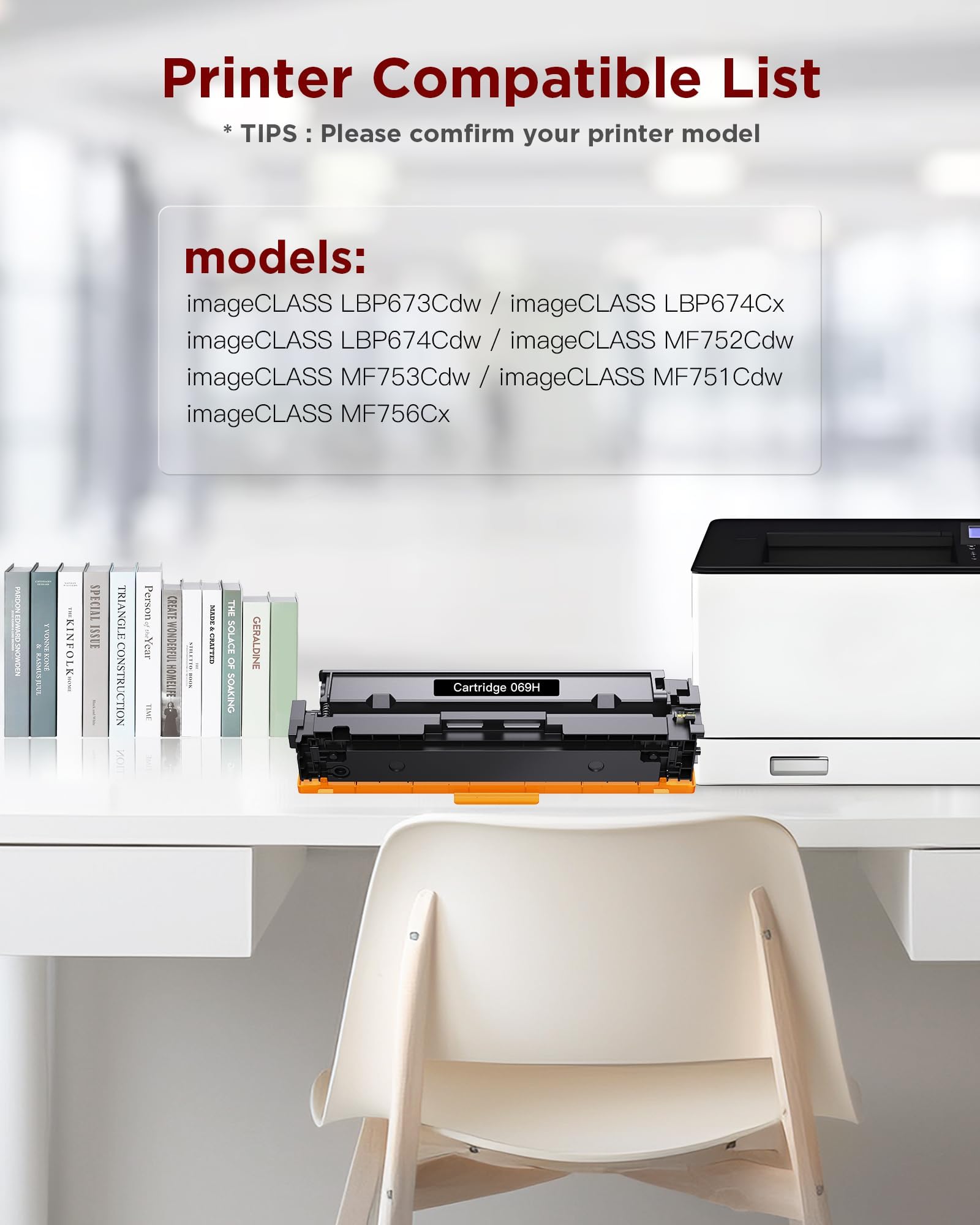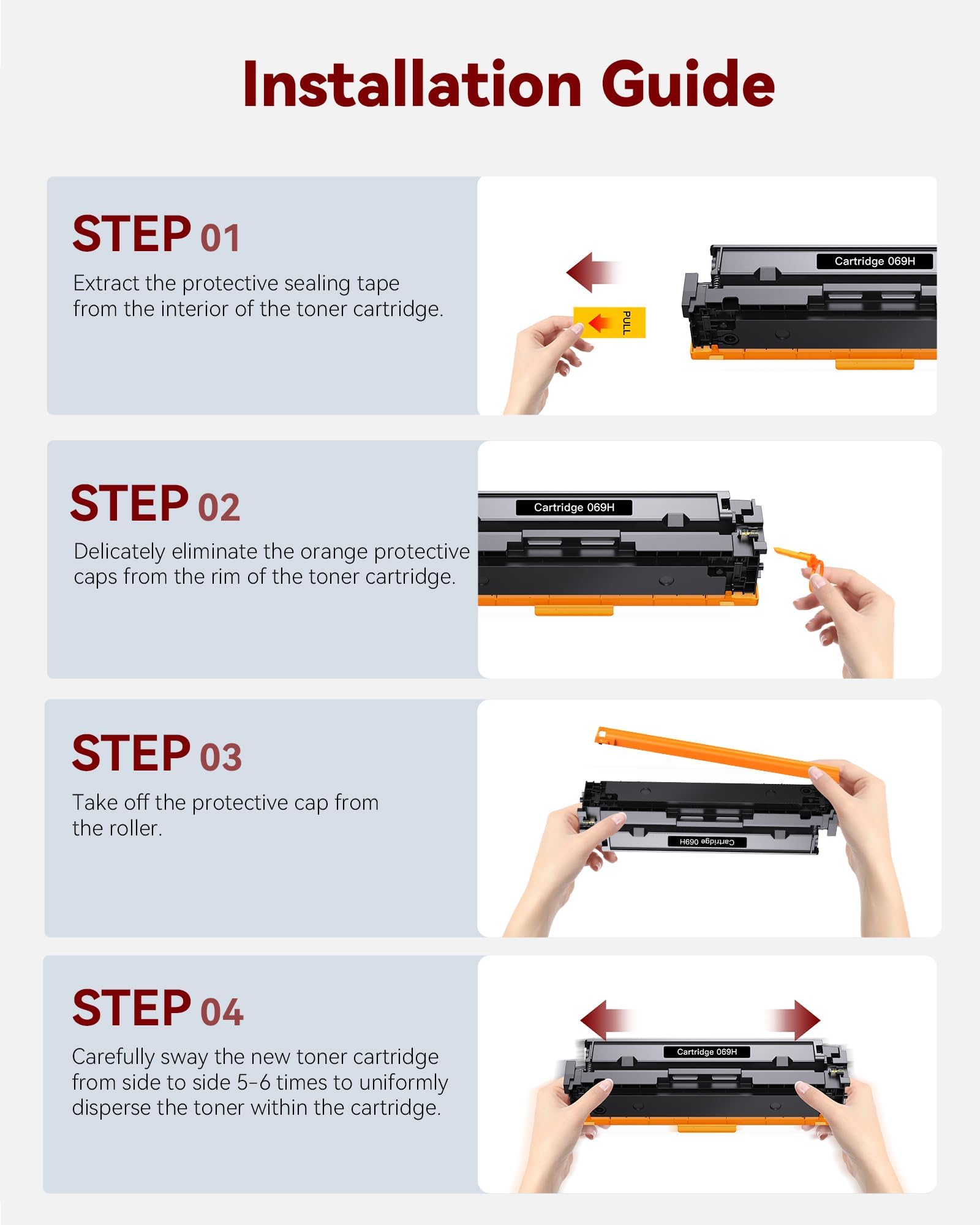 - With Built-In Chip: Compatible with Canon 069H toner cartridges are designed with integrated chips, simplifying the setup process and eliminating the need to transfer old chips to the 069 cartridges