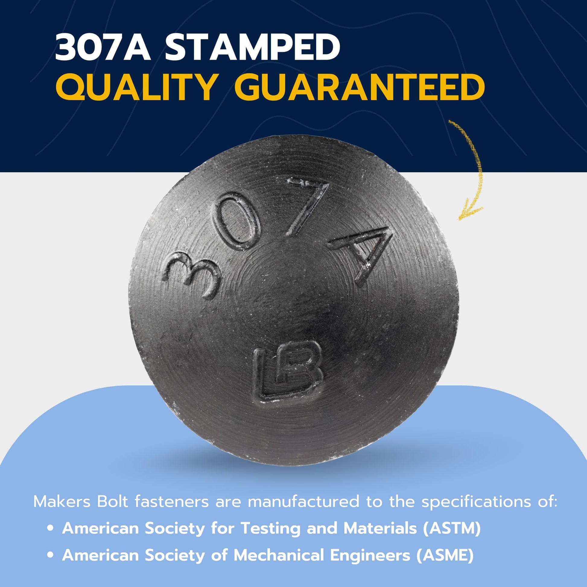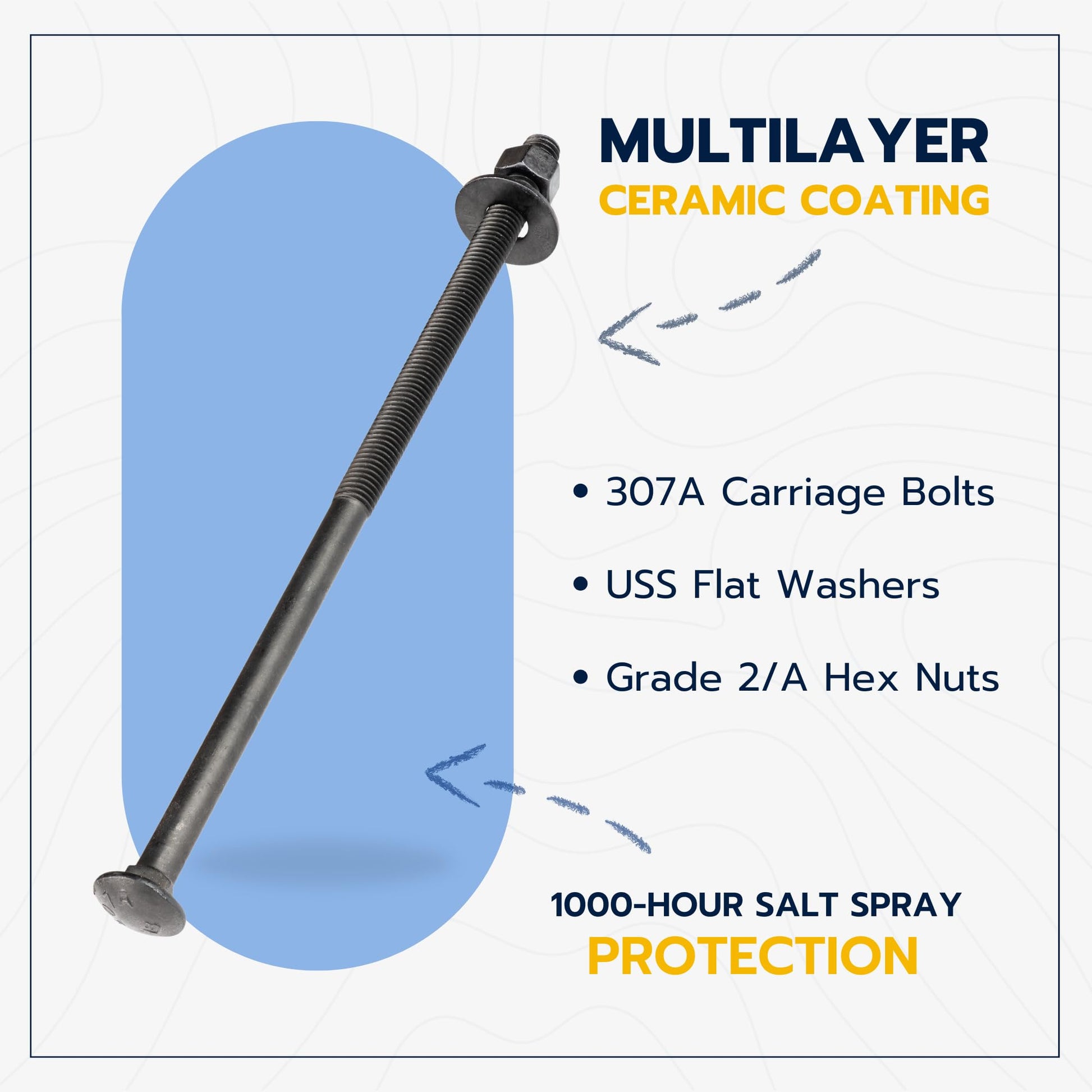 1/2 in. x 12 in. Black Carriage Bolt Kit Includes 12 Bolts, 12 Washers, and 12 Nuts, Ceramic Black Ruspert Coated for Exterior Use - 2X Rust Resistance of Galvanized by Makers Bolt
