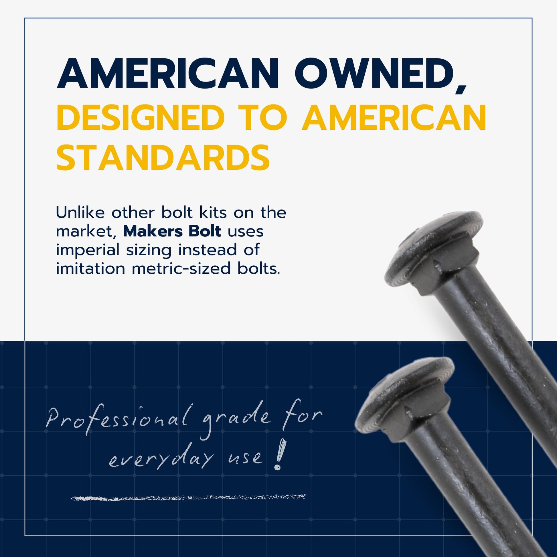 - Kit includes 12 carriage bolts, 12 USS thick washers, 12 hex nuts