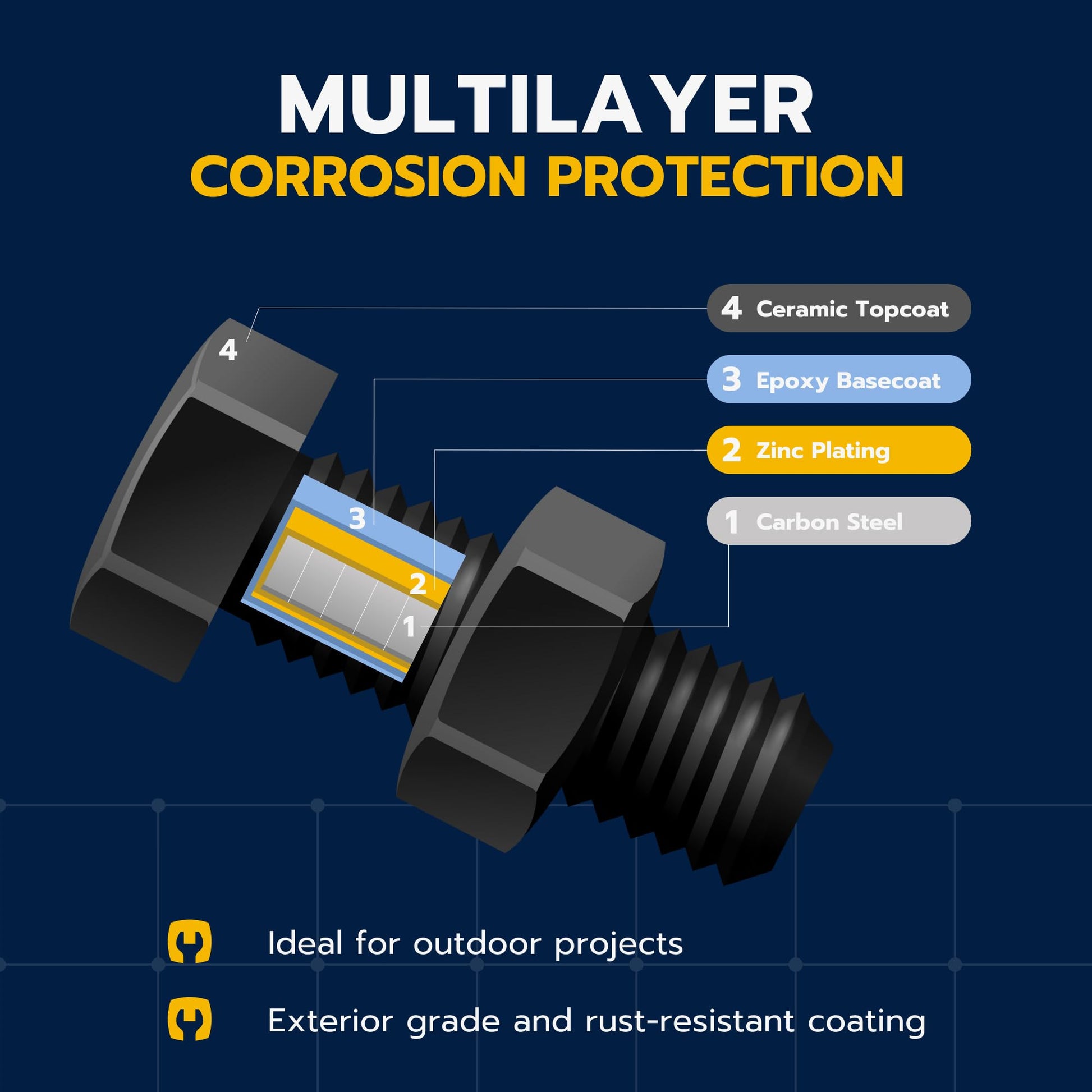 - 5-Layer ceramic black ruspert coating for superior rust resistance (2X protection compared to galvanized)
