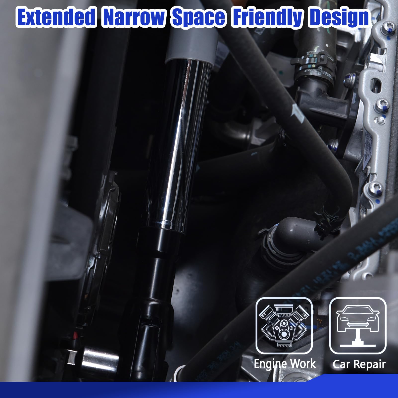 - Reach Tight Areas: The tight space extension wrench is designed for hard to reach nuts and bolts in tight automotive, DIY, and furniture assembly applications where standard tools won’t fit