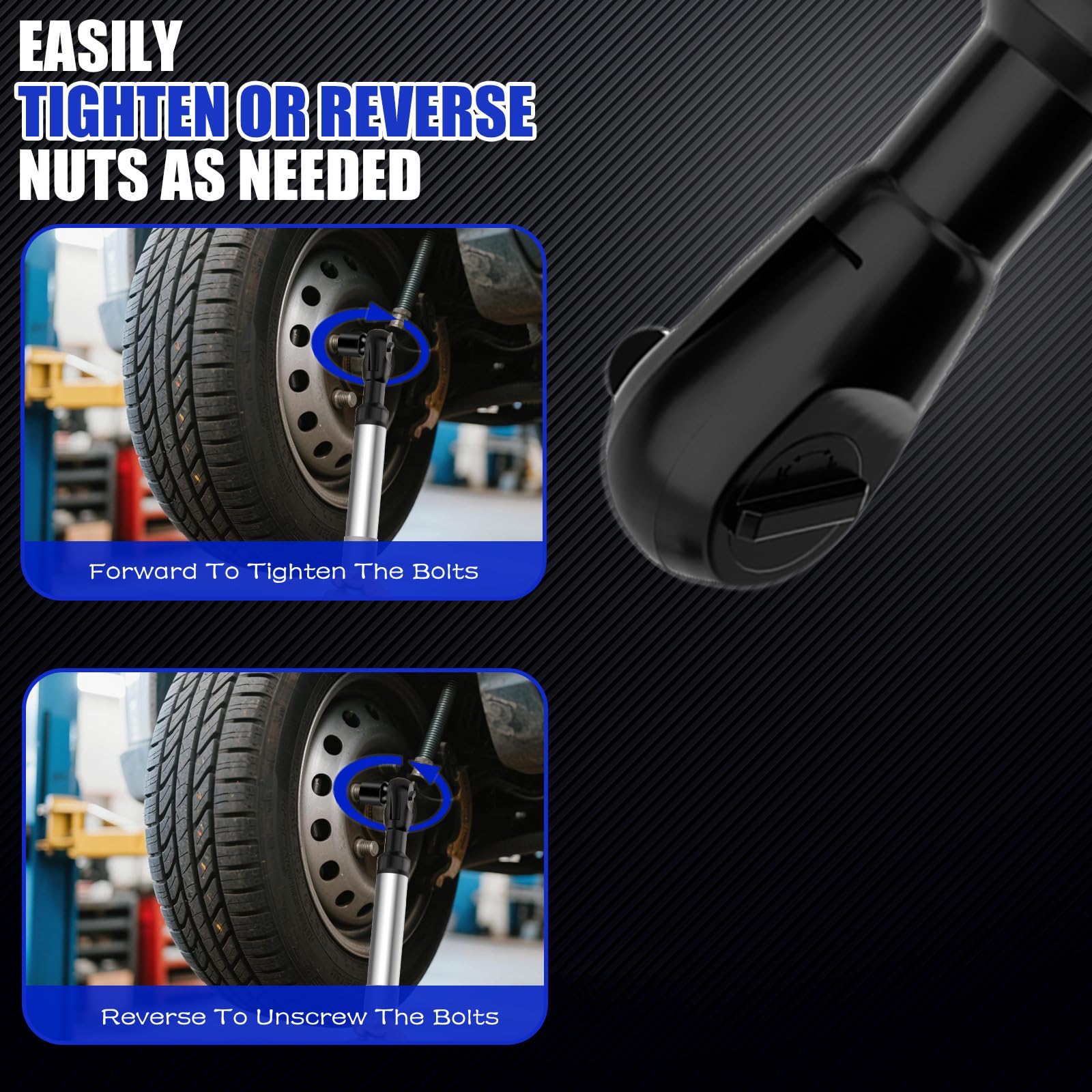 - Convenient Functionality: Features a quick forward/reverse switch for easy tightening and loosening without repositioning, includes 5 adapters for versatile socket compatibility