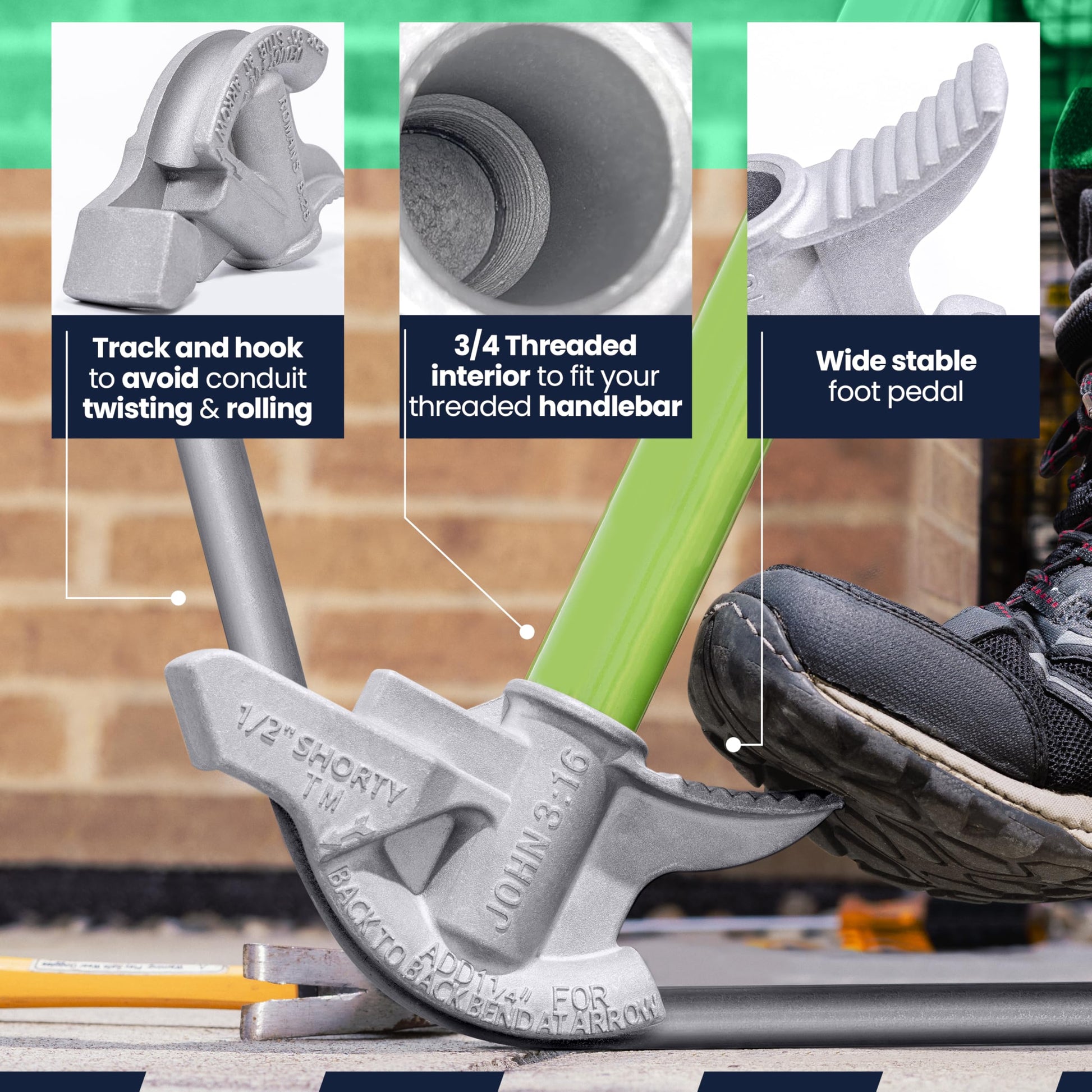 1/2" SHORTY -Half Inch, 1/2" aluminum EMT short bender with 3/4" inner thread