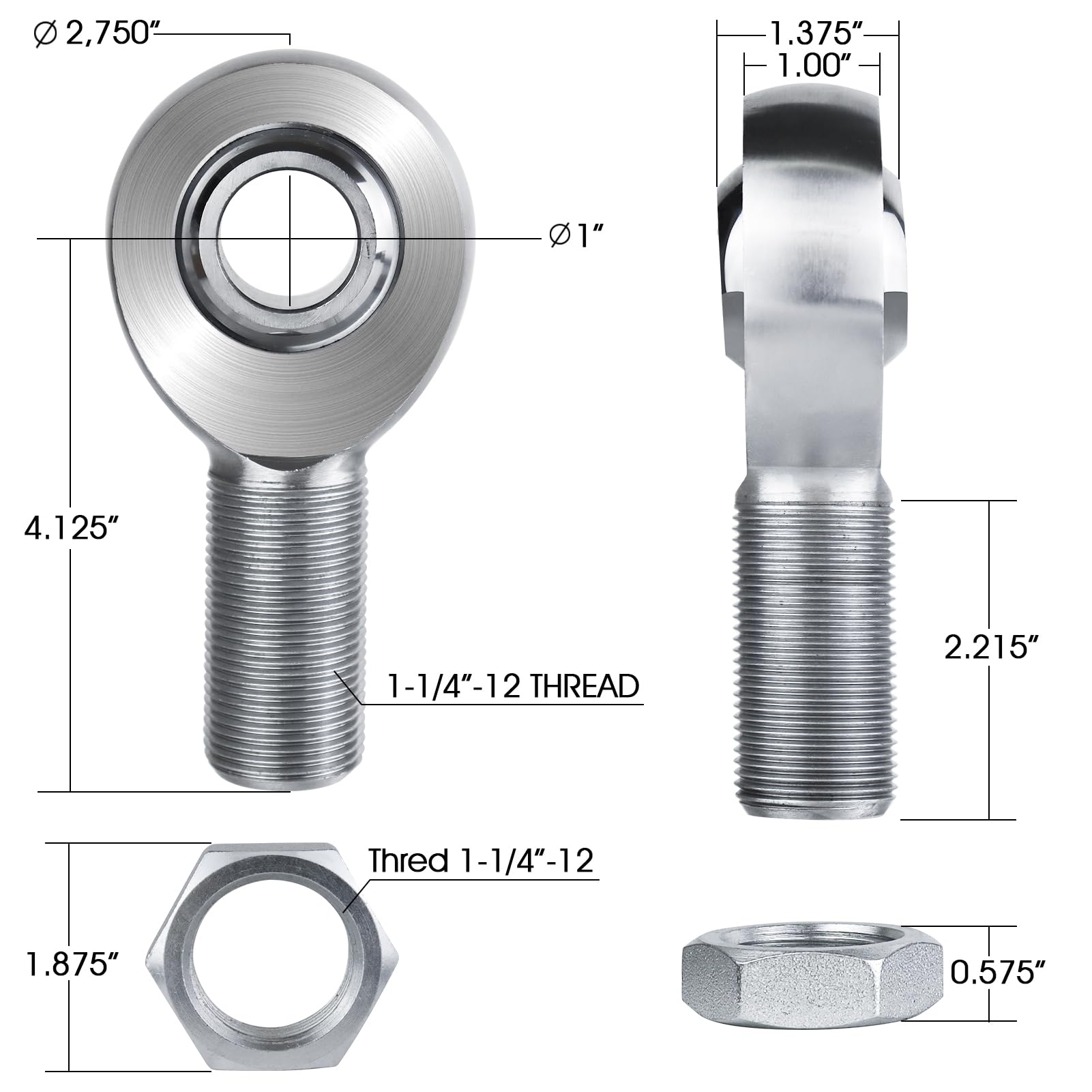 Details: 1.25" Adjustable Rod End Heim Joint Kit