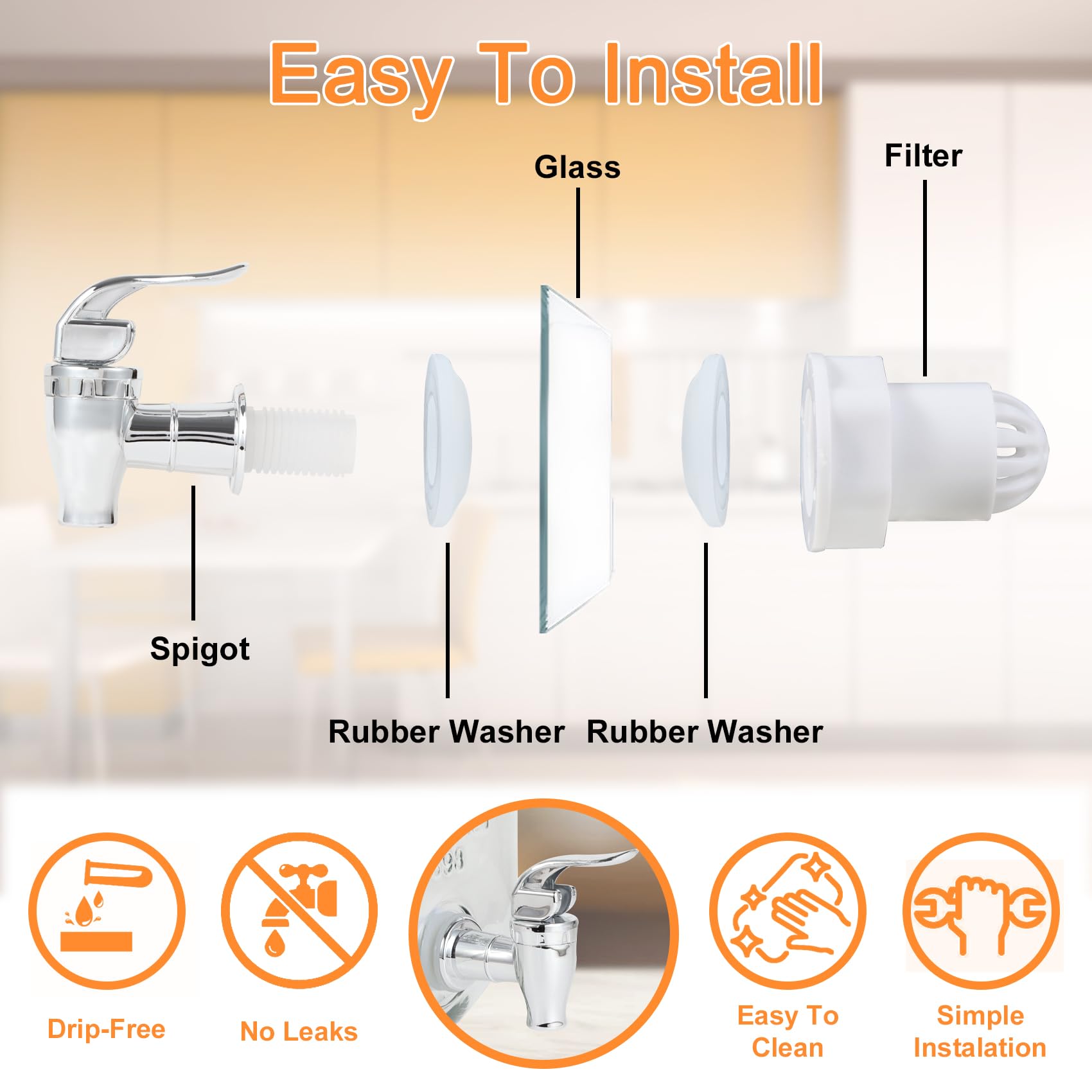 - Premium Quality Spigot:Spigot are made of premium food grade plastic, safe and durable.Equipped with a thick silicone gasket during installation, you will never worry about it leaking around the spigot. The sturdy spigot makes it easy to pour and supply beverages.We are equipped with an additional faucet for replacement