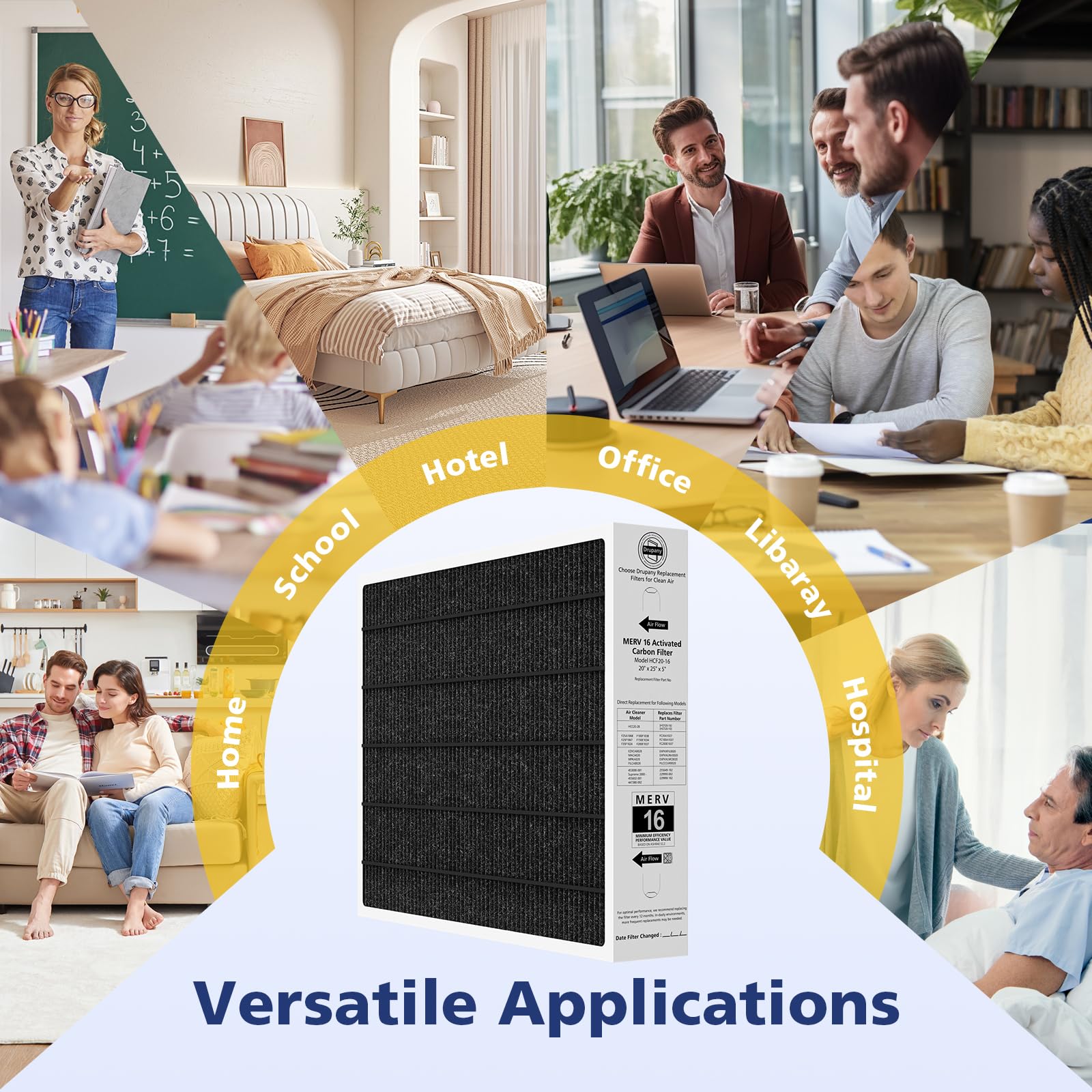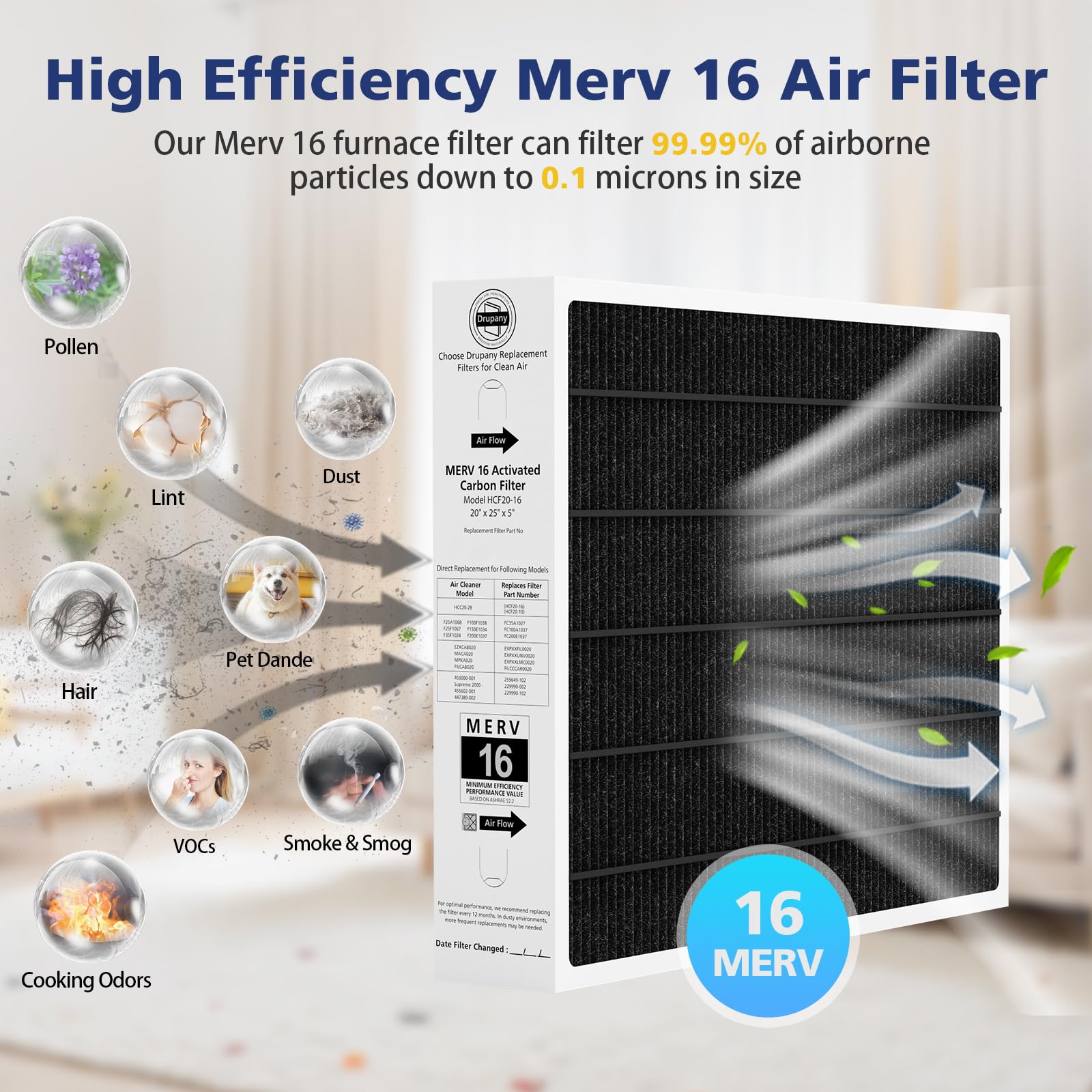- 【Wide Application】The MERV 16 carbon clean filter is an ideal replacement for your furnace, air conditioner, or HVAC system. It's suitable for use in homes, hospitals, and various other settings. This 20x25x5 MERV 16 air filter boasts exceptional durability, extending replacement intervals and ultimately saving you time and money.