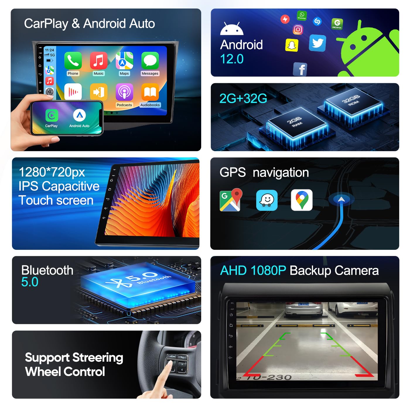 - 【Wired/Wireless CarPlay & Android Auto】This stereo radio upgrade device with Android 12 smart system with wired/wireles CarPlay and Android Auto, allowing you to seamlessly integrate your smartphone apps into your car's infotainment system,You can easily wake up Siri or Assistant to operate apps and perform various tasks, such as making calls, sending messages, finding directions, and controlling music playback,Enjoy a hands-free and safer driving experience.