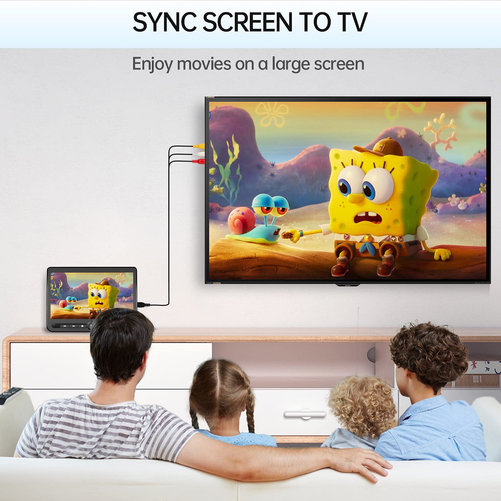 - Dual Portable DVD Player:Arafuna 10.5" dual portable DVD players give you Clearer HD Images, support playing different movies or mirroring the same DVD on both screens via simply AV Cable connecting. AV OUT allow SYNC playback to your big tv screen to enjoy the good leisure time with your whole family