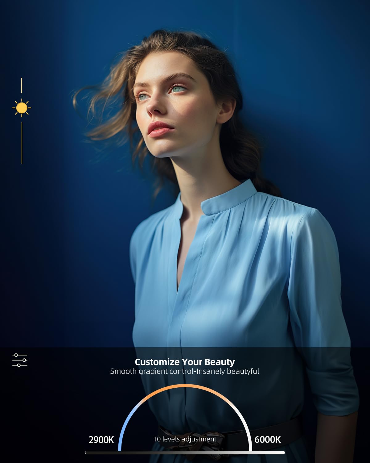 - Endlessly Customizable Lighting: Choose from 3 lighting modes (Warm 2900K, Cool 6000K, and Neutral 5000K) to perfectly match your creative vision or ambient environment, ensuring your subjects are always bathed in flattering, controlled illumination
