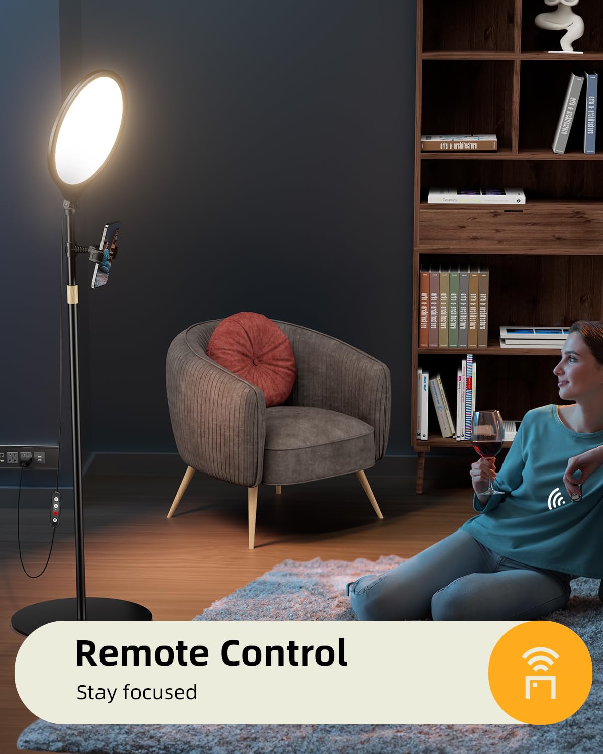 - Sleek Design & Versatile Functionality: With its minimalist design, this LED ring light also doubles as a stylish floor reading lamp for your living room or bedroom. Available in classic black and white, it seamlessly blends into any décor