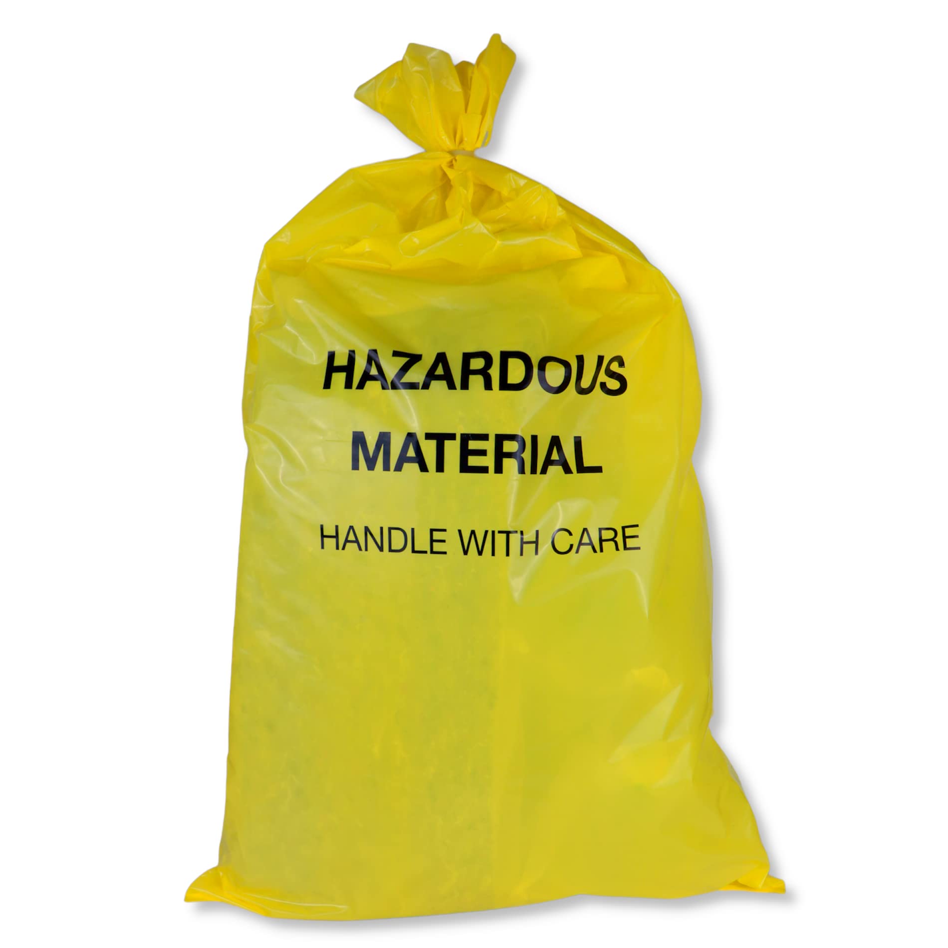- Each bag is labeled with the follow text for clear identification: “HAZARDOUS MATERIAL HANDLE WITH CARE”