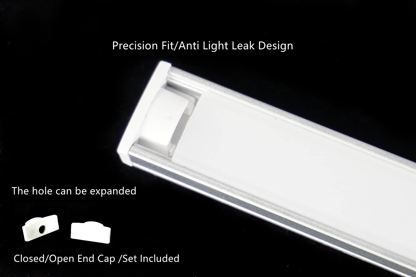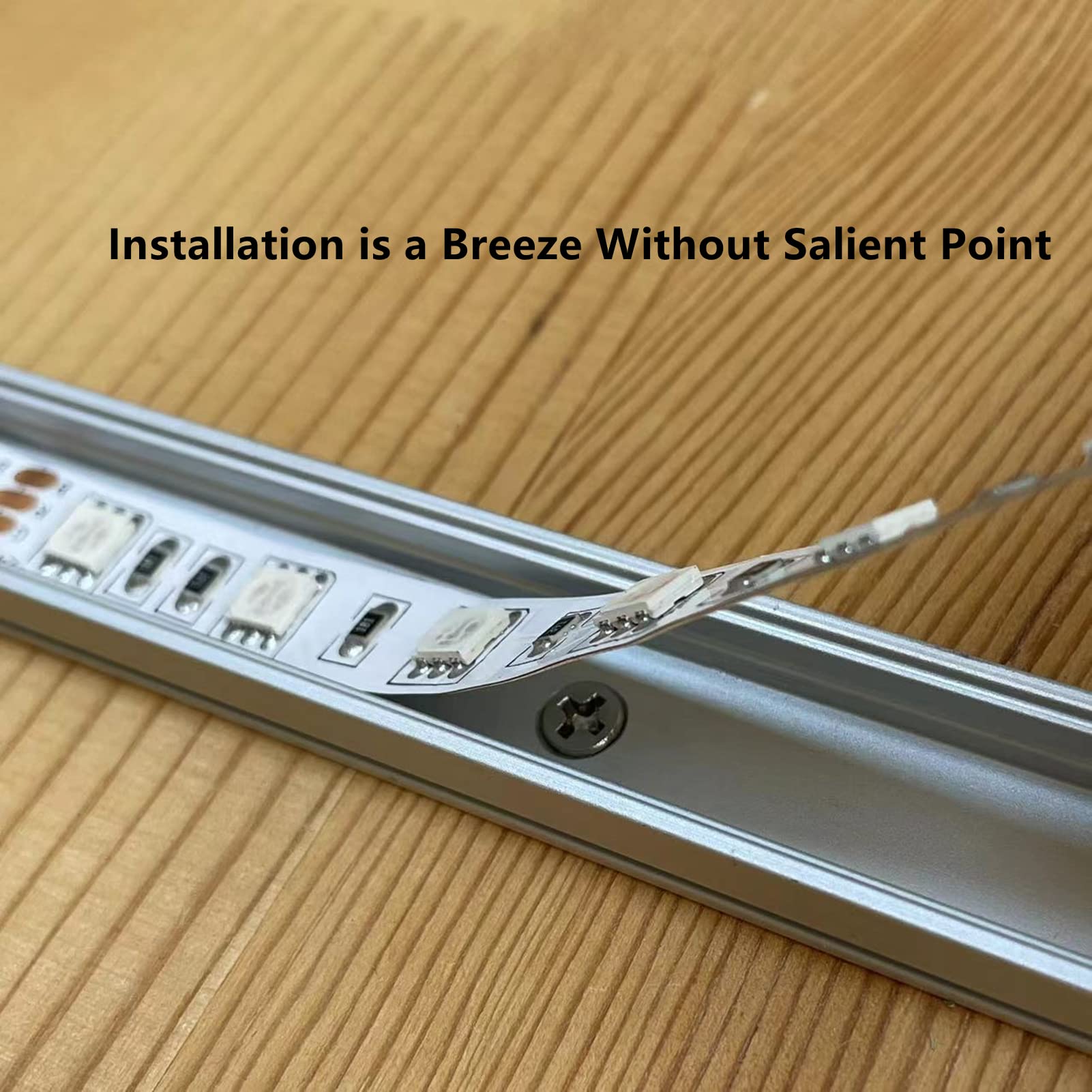 - Translucent Diffuser is Easy Snapped into the channel, It does not only protect the exposed strip from dust and moisture but also evening and smooth out the lights well with 90% Transmittance rate .The cover is protected by removable film initially