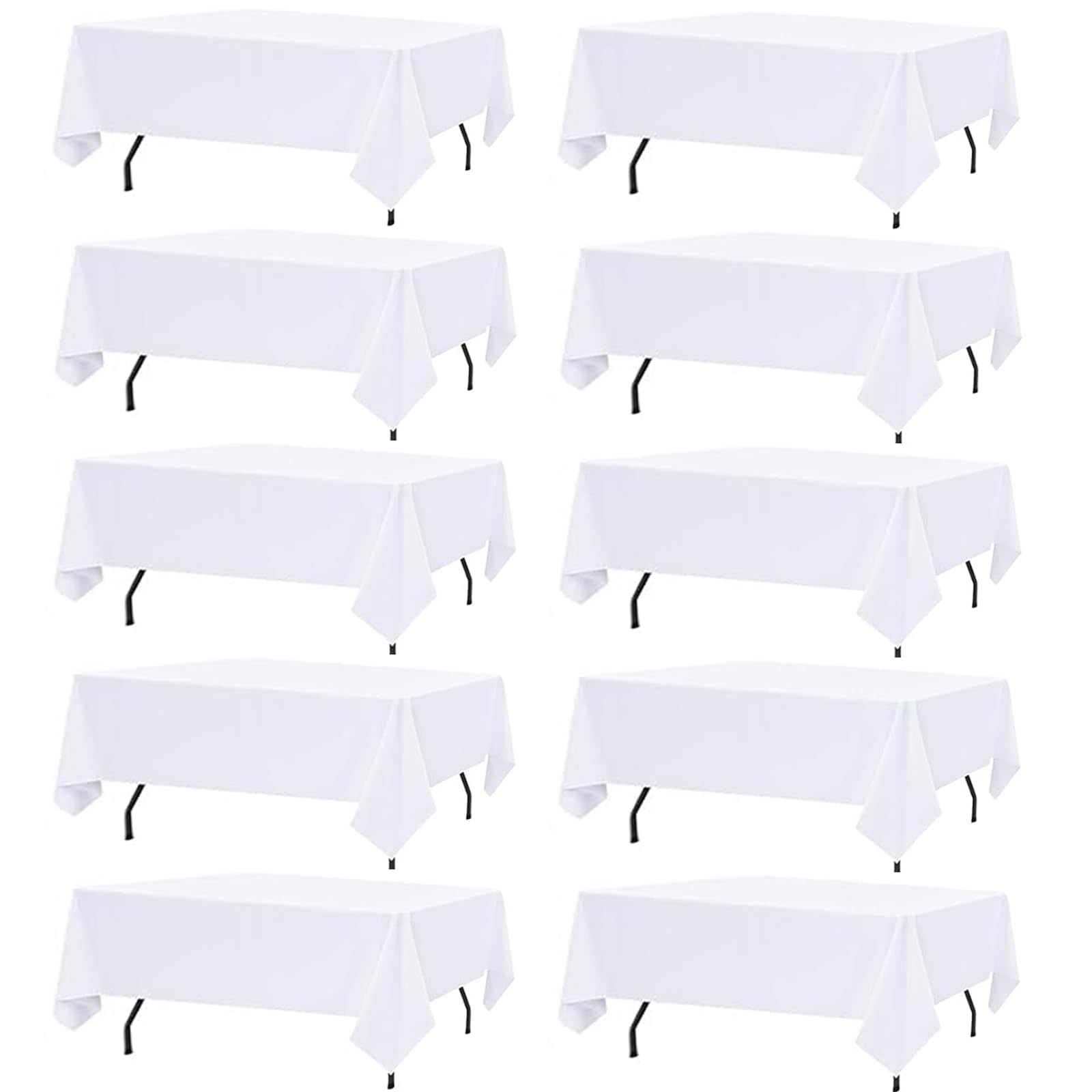 10 Pack White Table Cloth Rectangle Table Cloths for 8 Foot Rectangle Tables 60 X 126 Inch Washable Polyester Table Covers, Reusable & Wrinkle Resistant for Weddings, Parties, Events, and Everyday Use