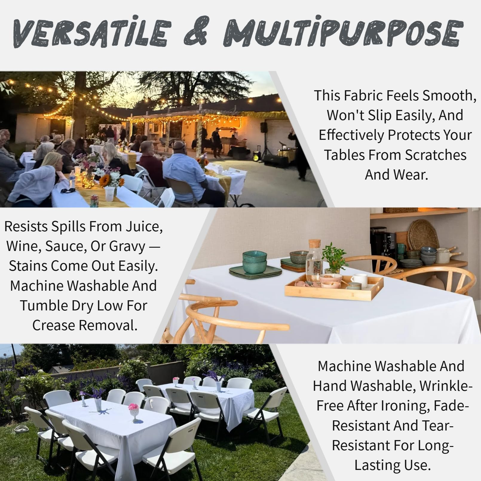 - 【Perfect Size】Each White Tablecloth Measures 60×126 Inches, Designed To Fit Standard 8ft Rectangle Tables, Protecting Your Furniture While Adding Elegance.