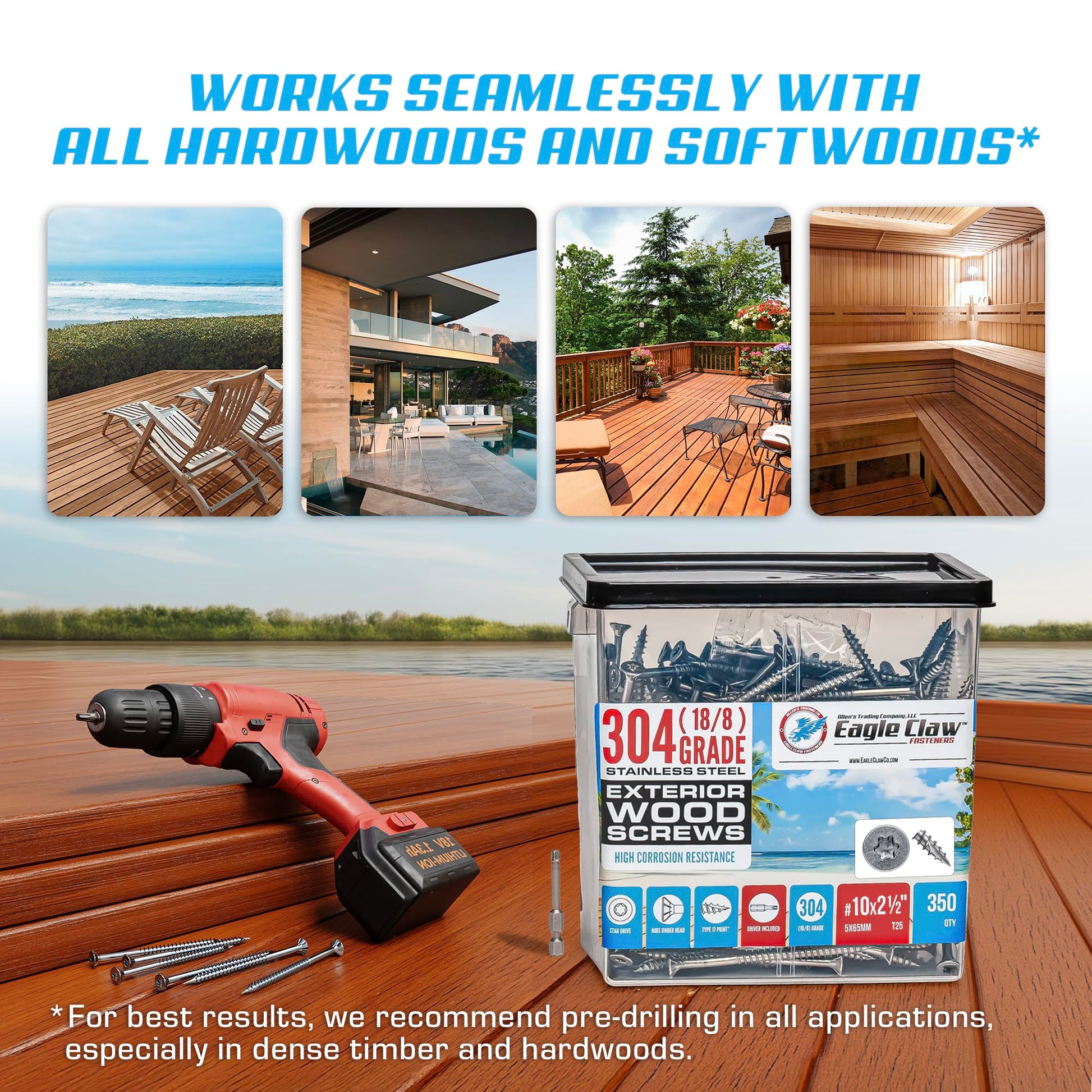 #10 X 2 1/2 Inch Stainless Steel Deck Screws 350 Pieces | T25 Star Torx Drive Flat Head | Stainless Steel Screws for Decks, Docks, Fencing or General Outdoor Construction and Home Improvement Projects