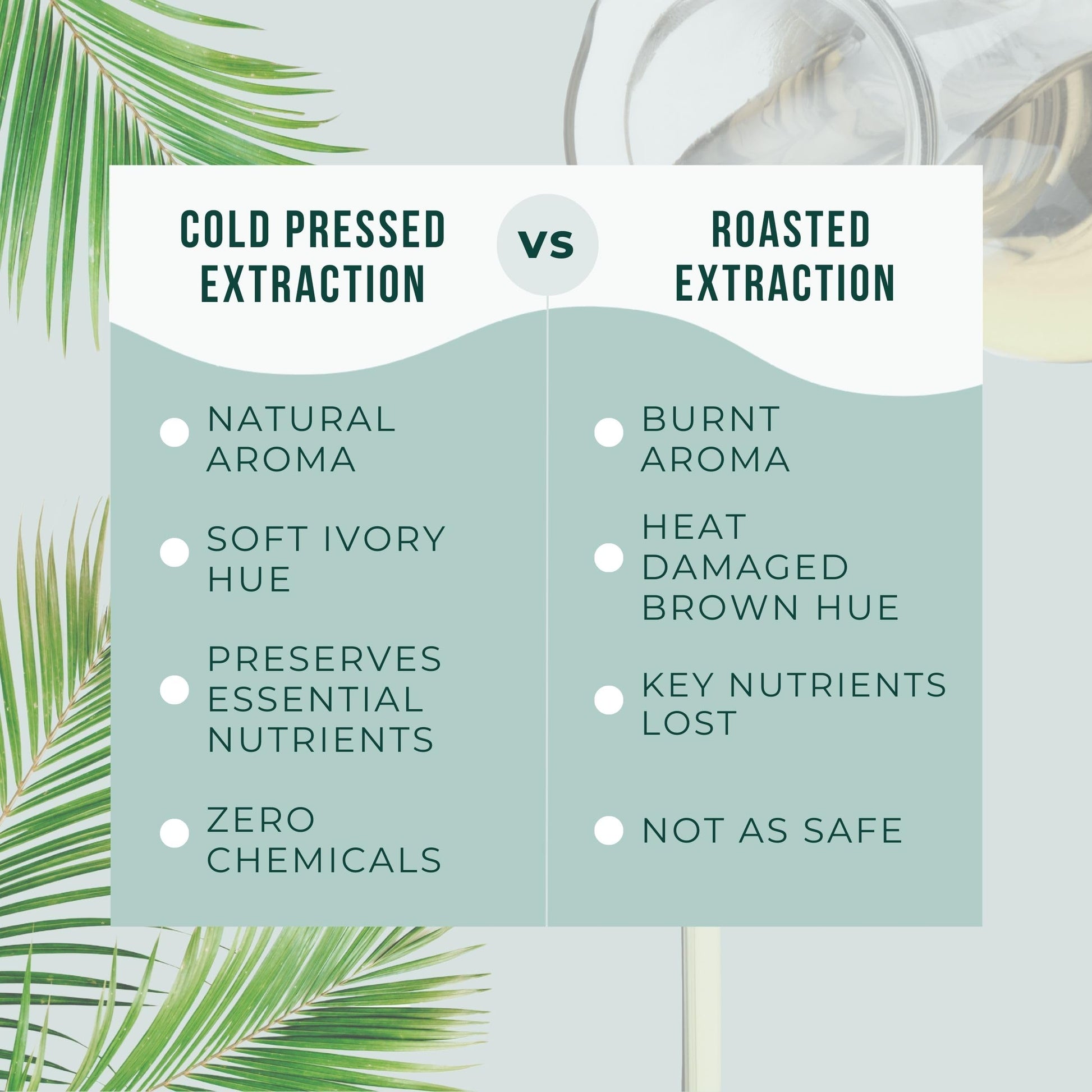 - Why Choose Cold Pressed Extraction over Roasting? Cold pressing preserves natural nutrients, flavors, and health benefits in oils like Batana, avoiding heat-induced degradation and ensuring a purer product