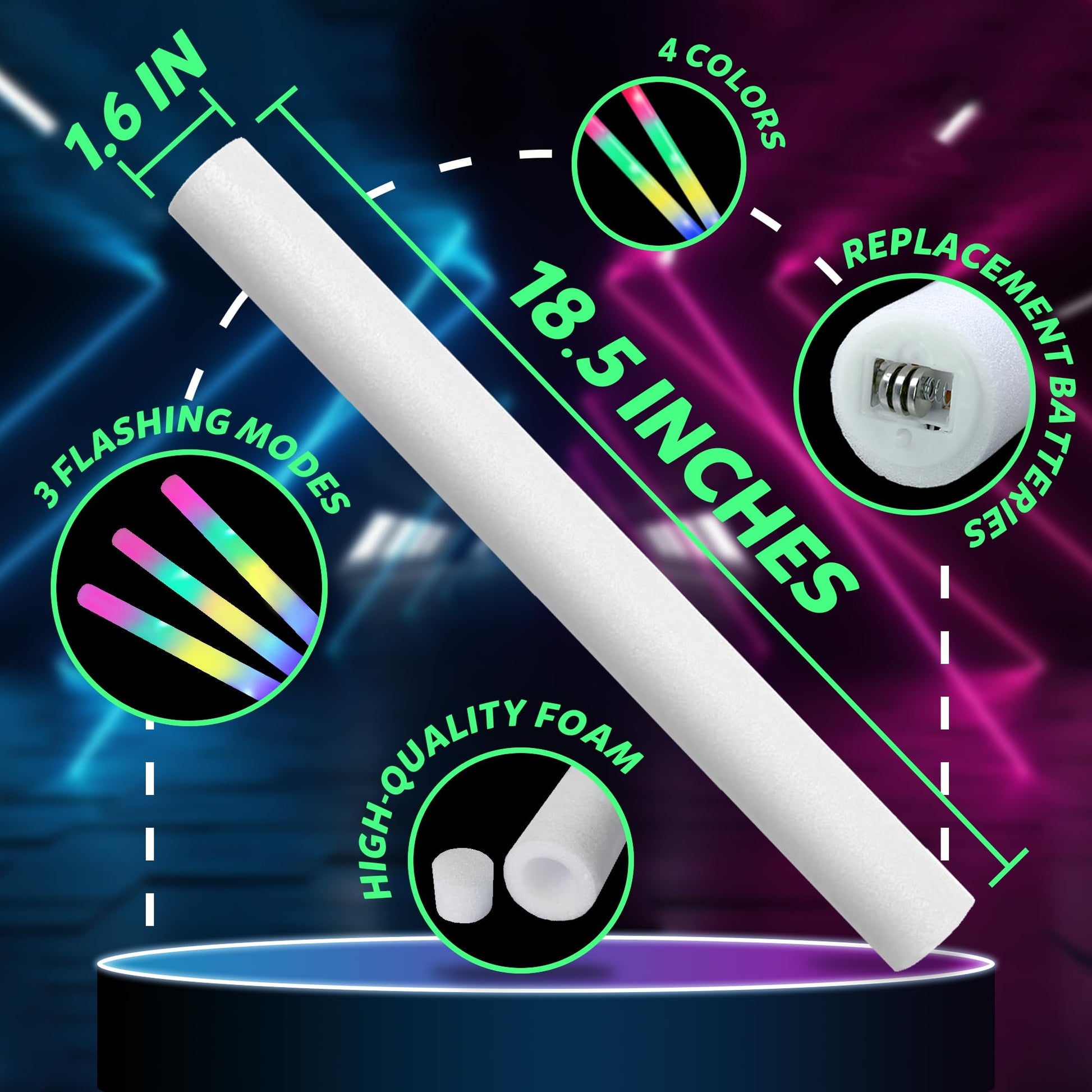- 【Versatile Use】: Whether you're hosting a birthday party, a nighttime sporting event, a concert, or a wedding, these foam glow sticks are versatile enough to enhance any atmosphere. Create a magical ambiance that will leave a lasting impression on your guests.
