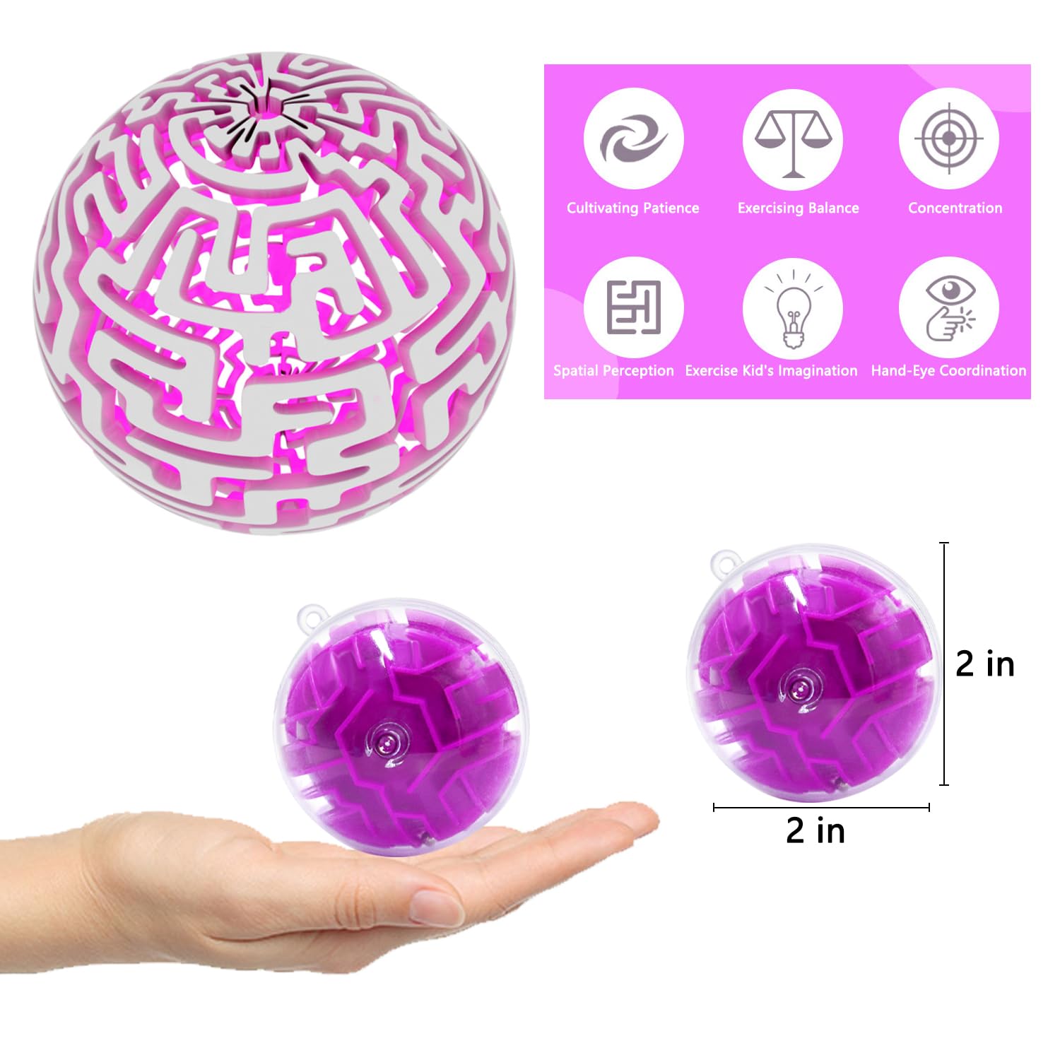 - Maze Party Favors for Kids: You will receive 100 pieces of puzzle mini 3D maze ball with key hanging hole, There are 4 color, which are pink, purple, blue and rose. Each puzzles ball toys is about 2 inches, which is light and portable. So you can put it in your pocket, and then you can have fun at any time so you can enjoy this maze brain teaser game anytime, anywhere. Quantity sufficiency perfect for kids party favors or as fidget toys for kids.