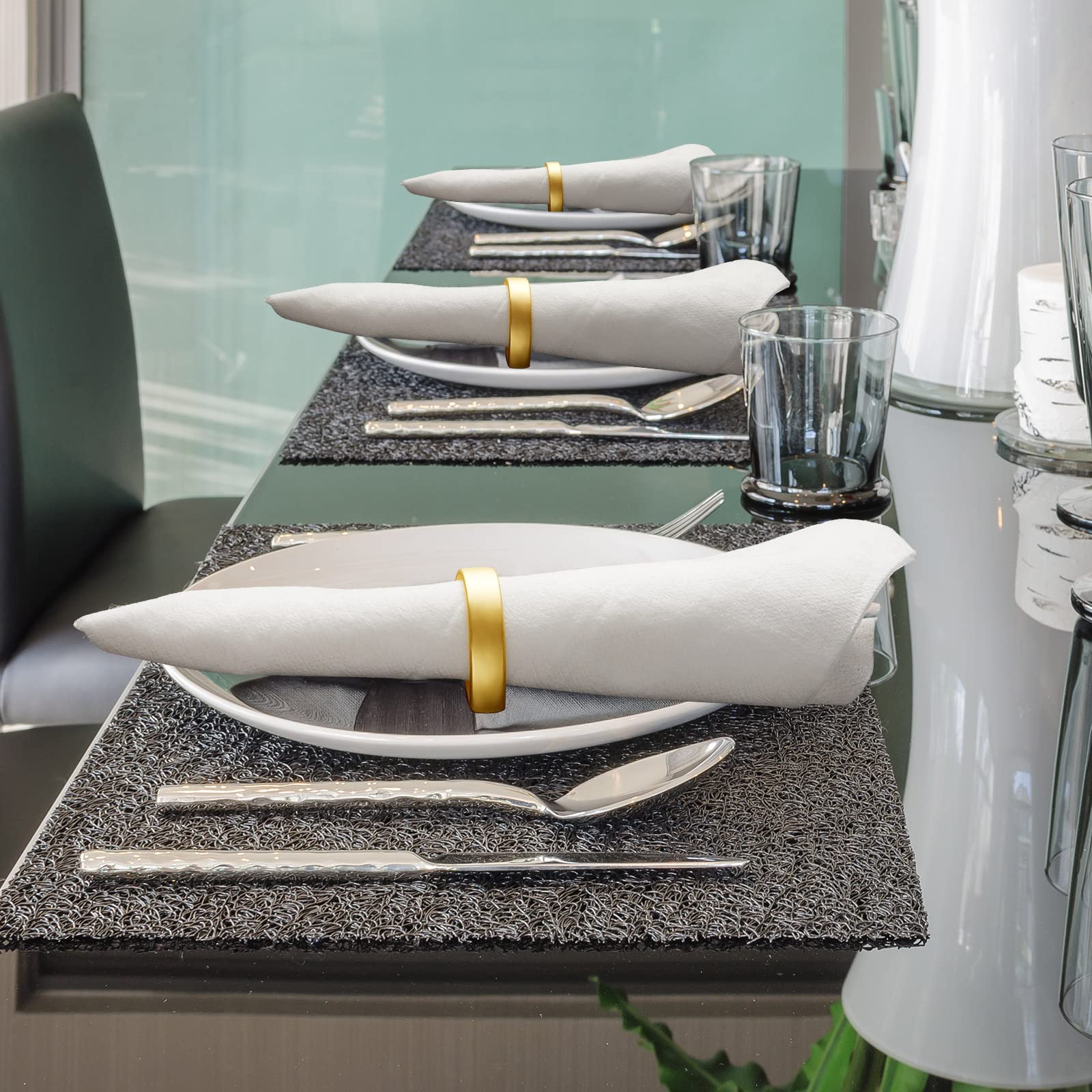 100 Pcs Stainless Steel Napkin Rings Festival Metal Napkin Ring Holders Modern Serviette Buckles Metallic Adornment for Table Settings Kitchen Dinner Party Wedding (Matte Gold Semicircle)