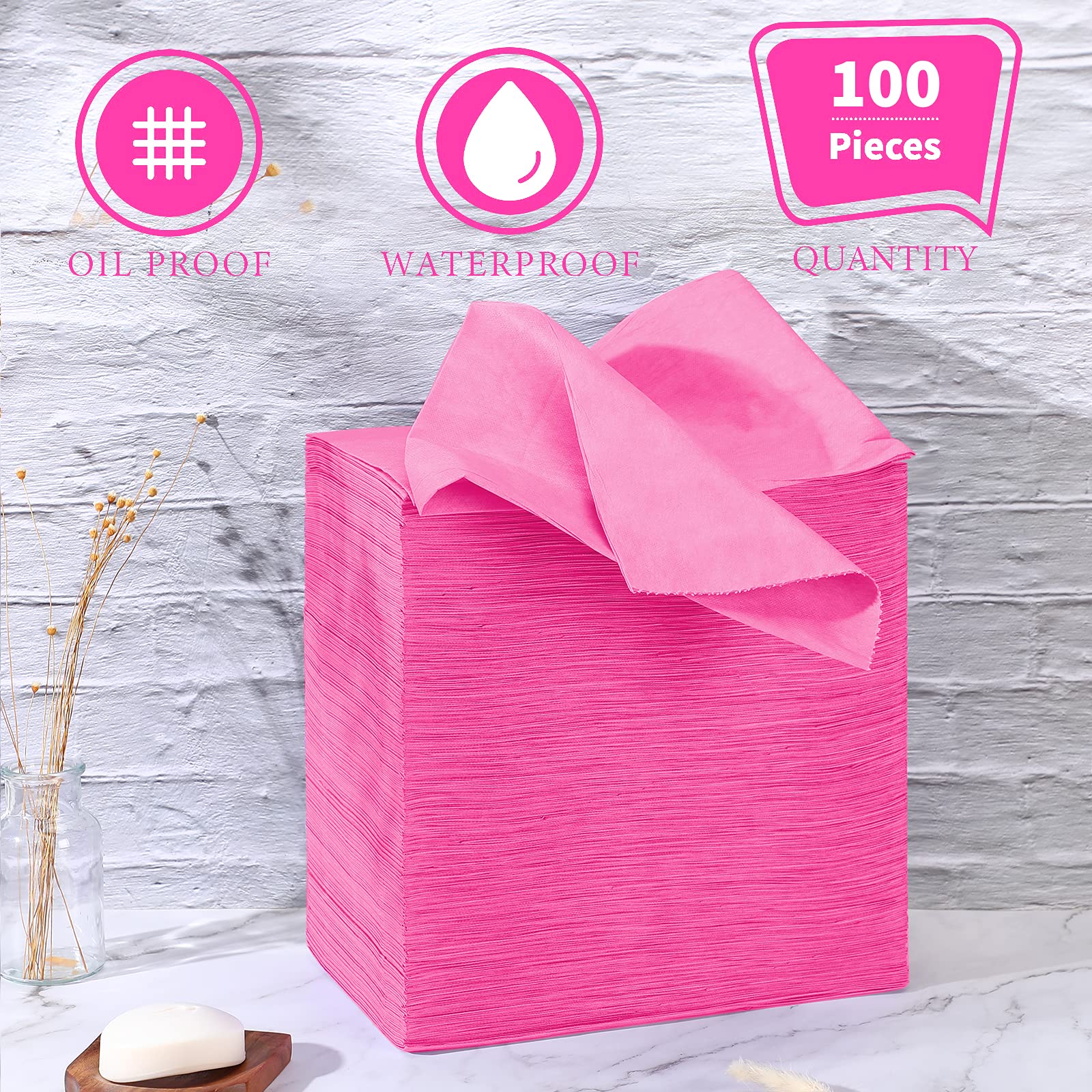 100 Pieces Disposable Bed Sheets Non-woven Spa Fabric Sheets Waterproof Massage Table accessories Oil Proof Bed Cover for Travel Spa Tatto Hotel Salon, 31.5 x 71 Inch(Pink)