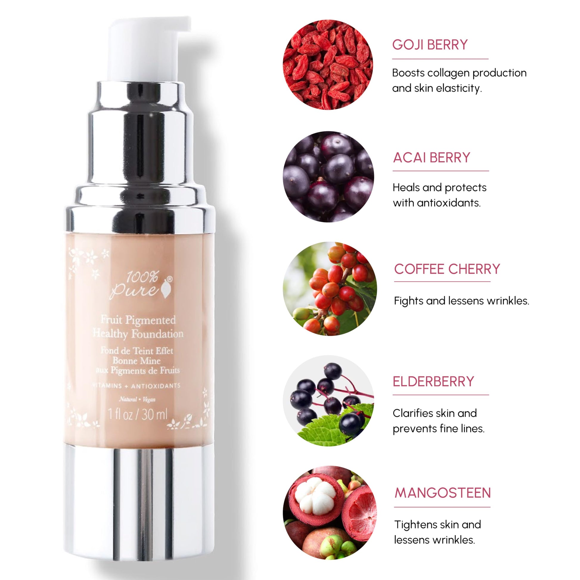 100% PURE Fruit Pigmented Healthy Foundation, Alpine Rose, Liquid Foundation Makeup, Anti-aging, Full Coverage, Matte Finish - 1 Fl Oz
