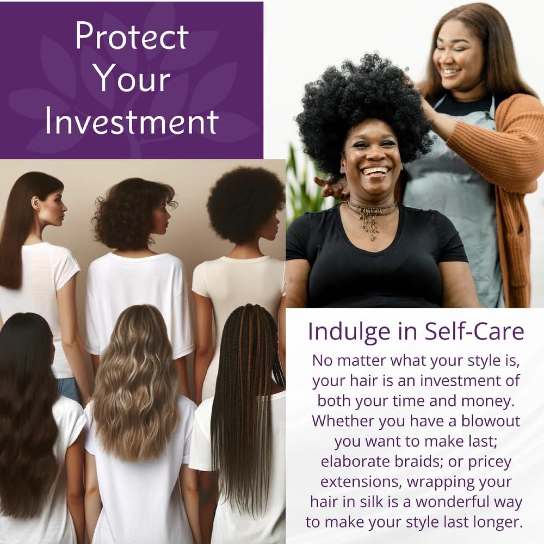 - Silk Scarf for Night-Time Routine: Preserve your hairstyle while sleeping. Our scarf reduces hair breakage and retains moisture, suitable for thick, thin, curly, or coiled hair types.