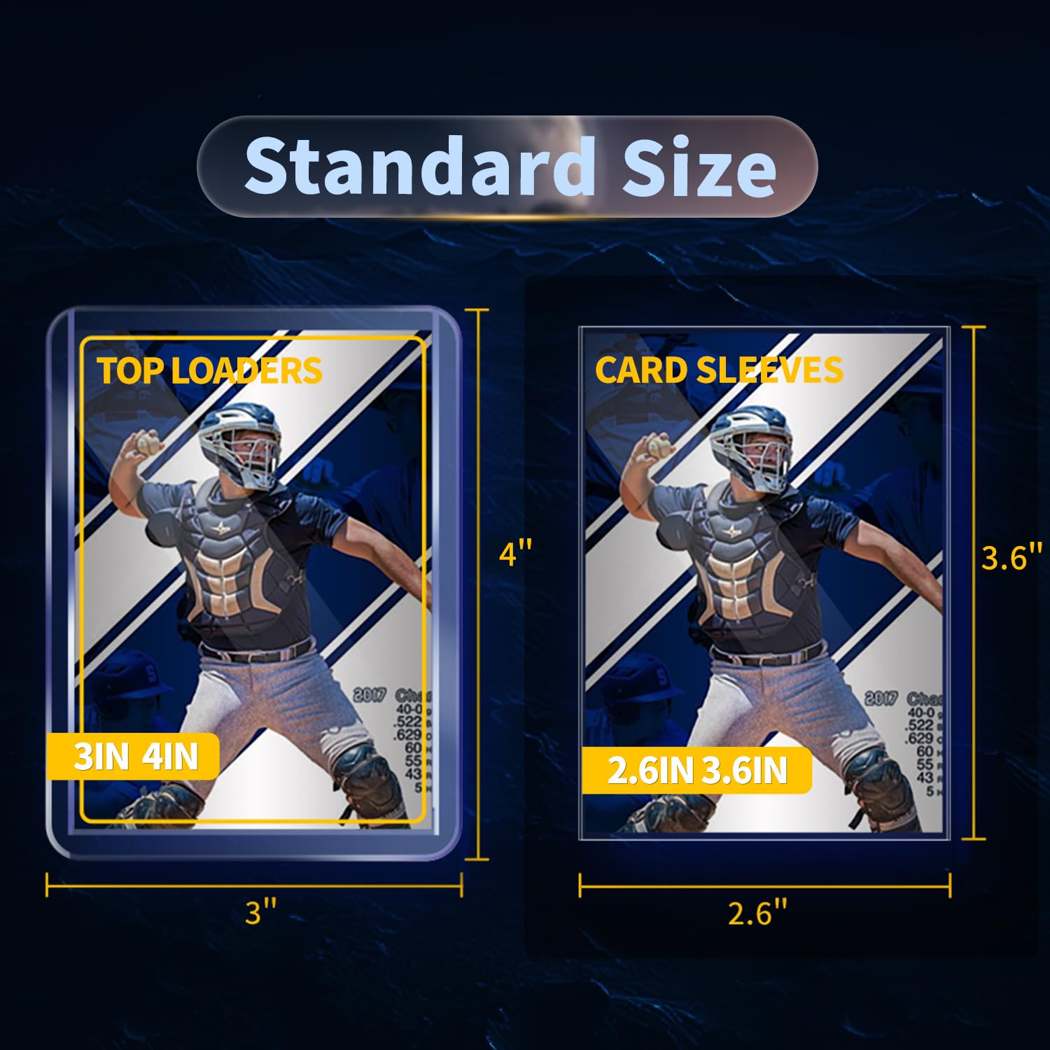 - ✅【SUPERIOR PROTECTION& CLEAR VISIBILITY】Our trading card top loaders are made of higher-quality material that is acid-free, anti-scratch, and durable. The card toploads are sturdy enough to keep your trading cards from bending, scuffing, and marring in the shipping, and protect your cards against water, scratches, fading, and fingerprints. Our top loaders are easy to use and offer a clear view of your cards, making them perfect for displaying or storing your cards.