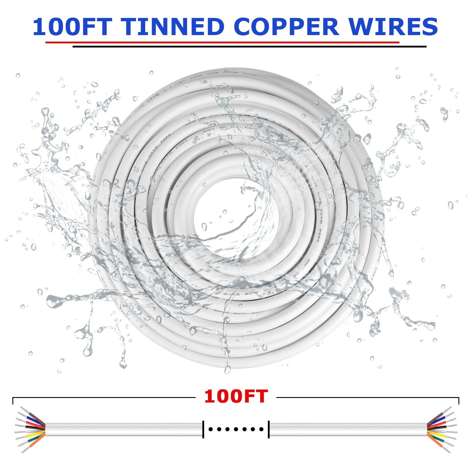 - Specification: 18 gauge 8 conductor wire, Total 100feet, Max voltage: 300V (also can for 5V 12V 24V to 300V), Max current: 7.5A; and the rated operating temperature up to 80℃/176℉