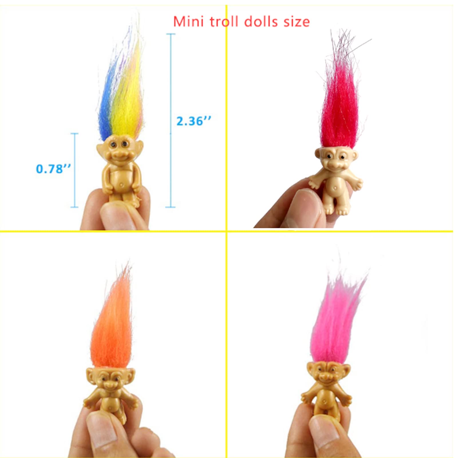 - Size: Each good luck troll is about 3cm tall(including the hairs), tiny and lightweight.Please allow slight difference in size due to manual measurement