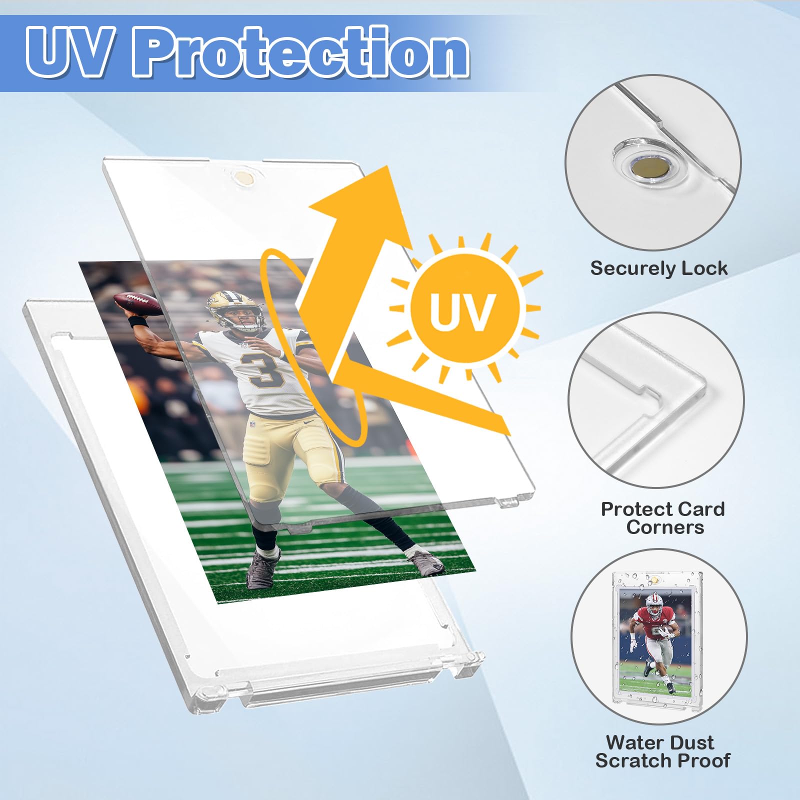- High-Quality U-V-Resistant Protection: Our 100pt magnetic card holder are made with premium U-V-resistant material, providing all-around protection for your valuable cards. You no longer have to worry about fading, scratches, or wear and tear. Keep your treasured cards safe from bending, scuffing, or creasing with this durable, baseball card protectors case!