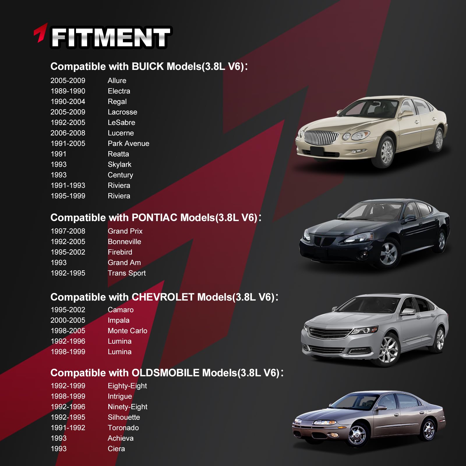 - 【FITMNET】Compatible with BUICK Models 3.8L V6: 2005-2009 Buick Allure, 1989-1990 Electra, 1990-2004 Regal, 2005-2009 Lacrosse, 1992-2005 LeSabre, 2006-2008 Lucerne, 1991-2005 Park Avenue, 1991 Reatta, 1993 Skylark, 1993 Century, 1991-1993, 1995-1999 Riviera