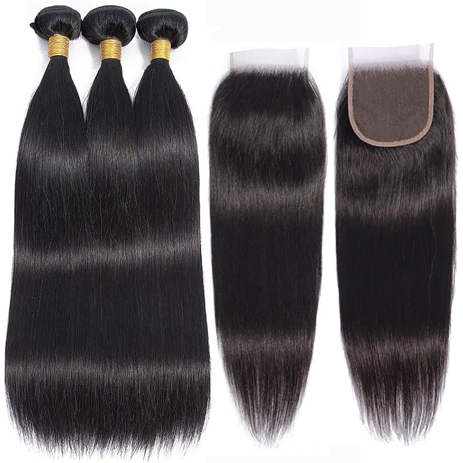 - Straight Hair Weave Bundles with Closure Package: 3 Bundles and Closure Human Hair, Suitable for Party, Birthday, Wedding, Graduation, Bring You the Perfect Looking on Any Occasion