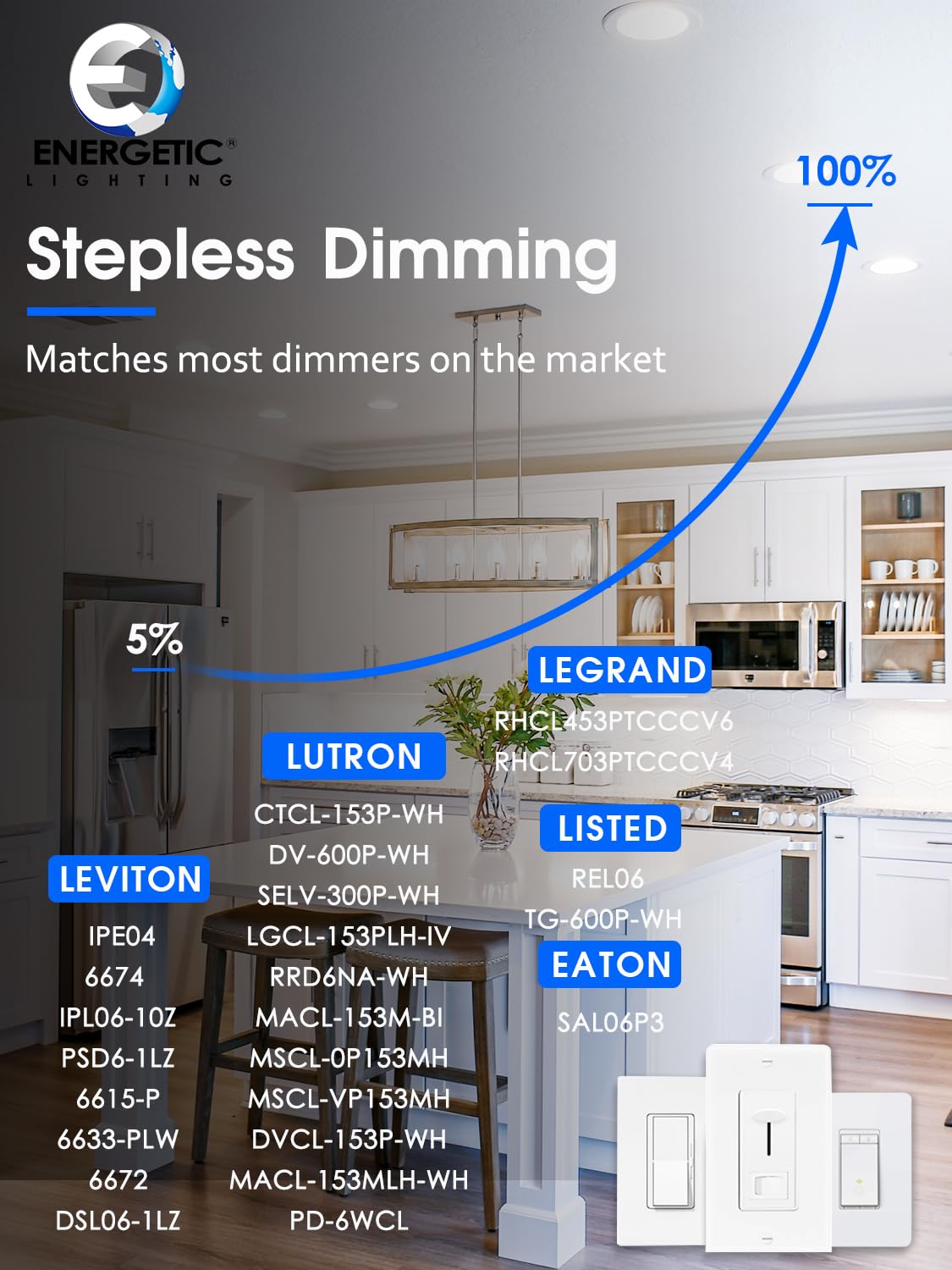 - 💡Eye protection: Our led can lights retrofit recessed lighting can smooth dimming from 5% to 100%. so you can choose the most comfortable brightness for your eyes. no flicker and no noise, which is compatible with most popular dimmers. suitable for Wet location, meets various scenarios, such as living room, kitchen, bedroom, bathroom, soffits, workplace, etc