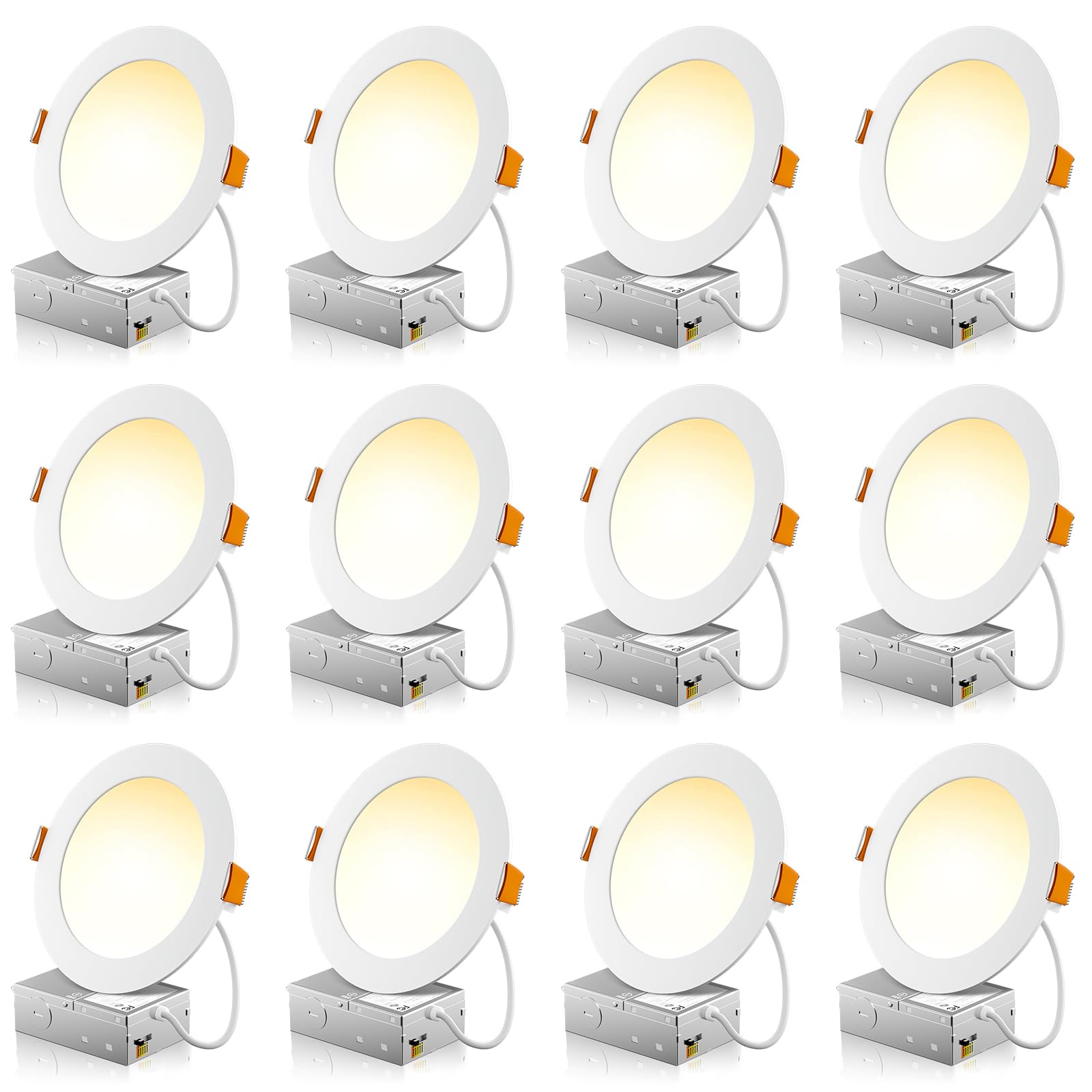 12 Pack 6 Inch 5CCT Ultra-Thin LED Recessed Ceiling Light with Junction Box, 2700K/3000K/3500K/4000K/5000K Selectable, 1050LM Brightness, Dimmable Canless Wafer Downlight, 12WEqv110W, ETL&FCC