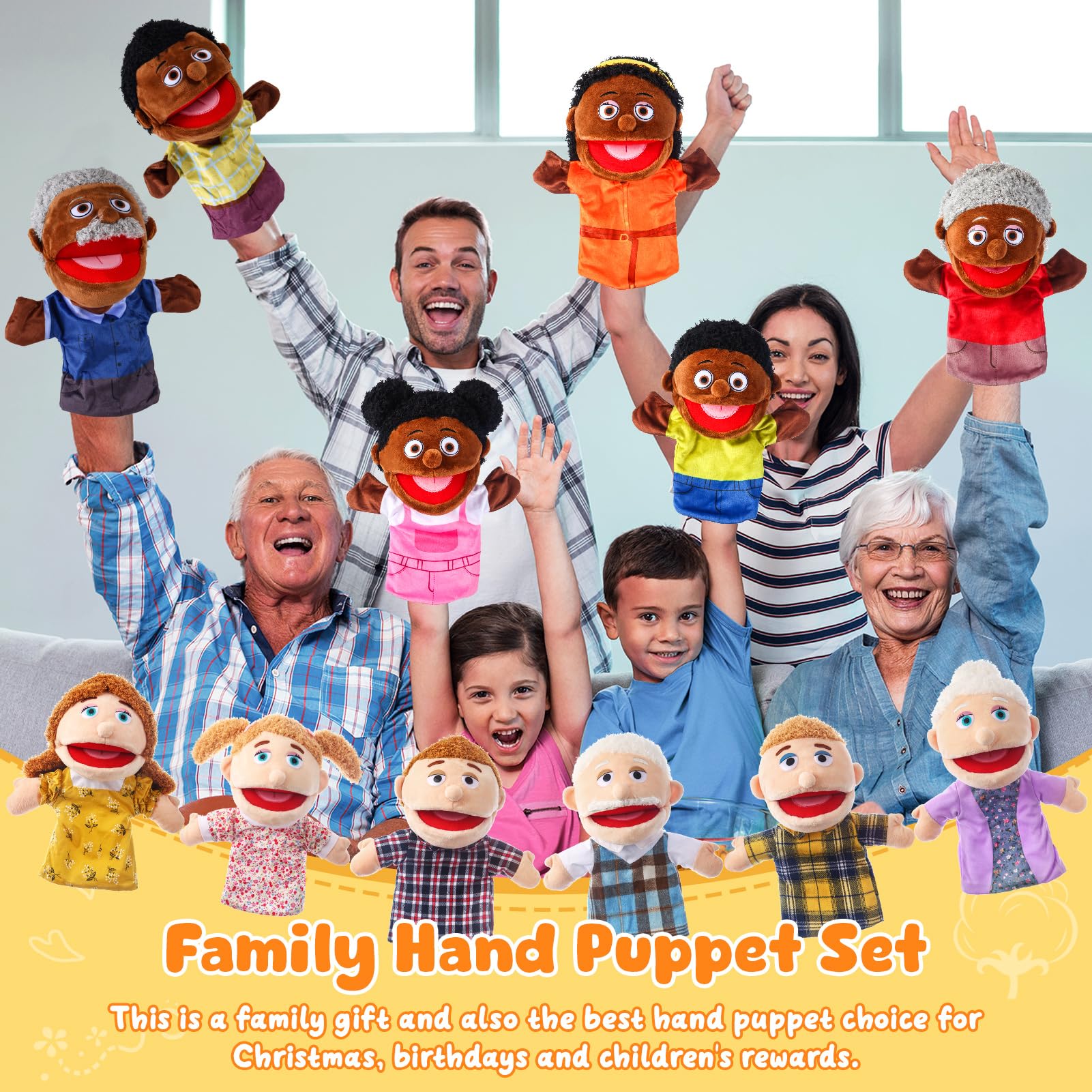 12 Pcs Family Hand Puppets 12 Inch Grandparents Mom Dad Brother Sister Plush Toys Role-Play Toy Puppets for Kids Storytelling Imaginative Pretend Play Teaching Preschool(Multicultural Family)