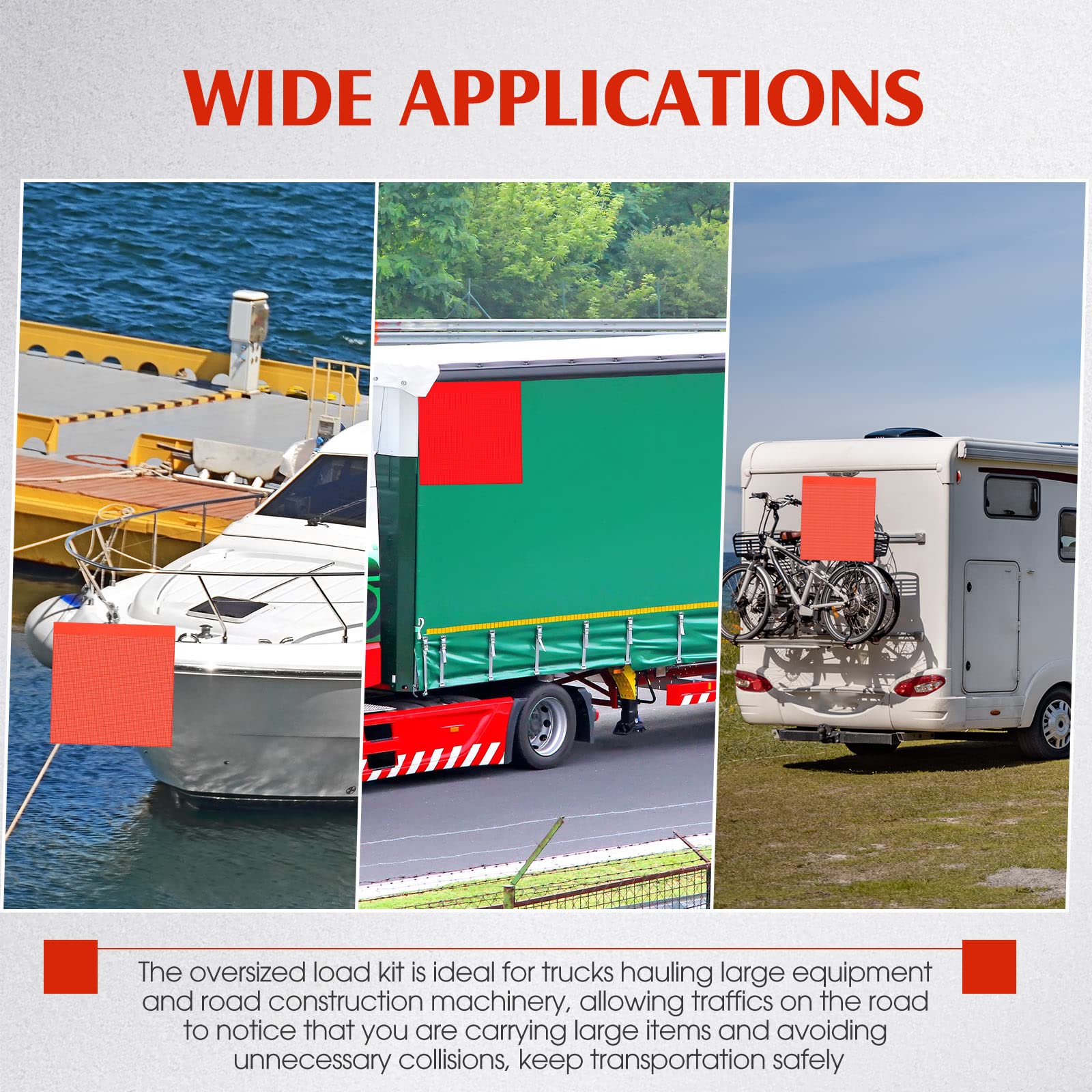 - Wide application: this oversized load kit is ideal for trucks hauling large equipment and road construction machinery, allowing traffics on the road to notice that you are carrying large items and avoiding unnecessary collisions, keep transportation safely