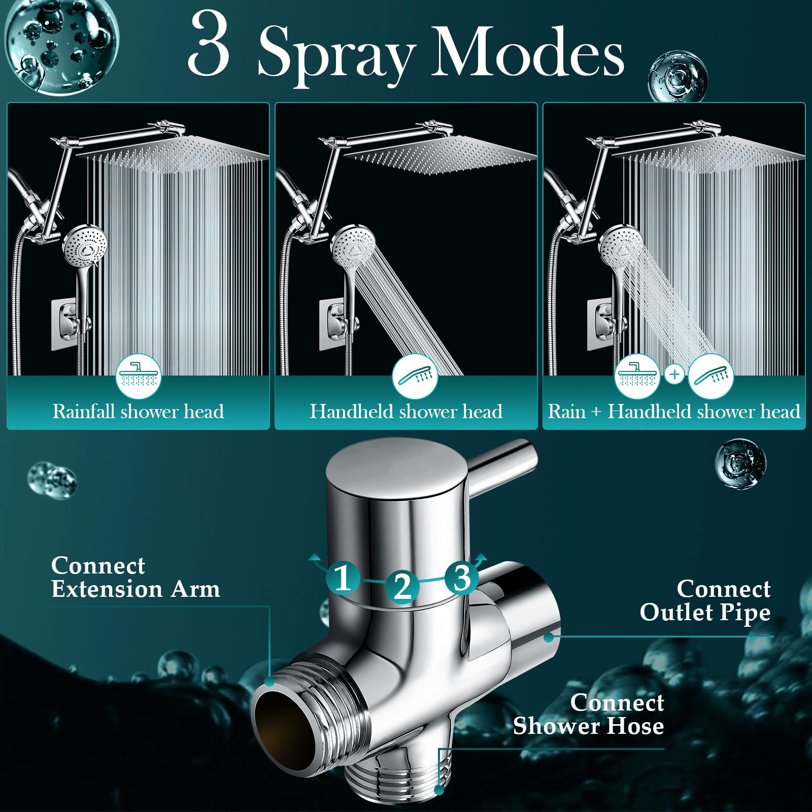 - 5 Spray Setting Handheld Shower Head : The hand held shower head has 5 spray setting, it offers the flexibility to target specific areas or to rinse off with ease.The water in each mode is fine dense and uniform, making your skin feel gentle and comfortable