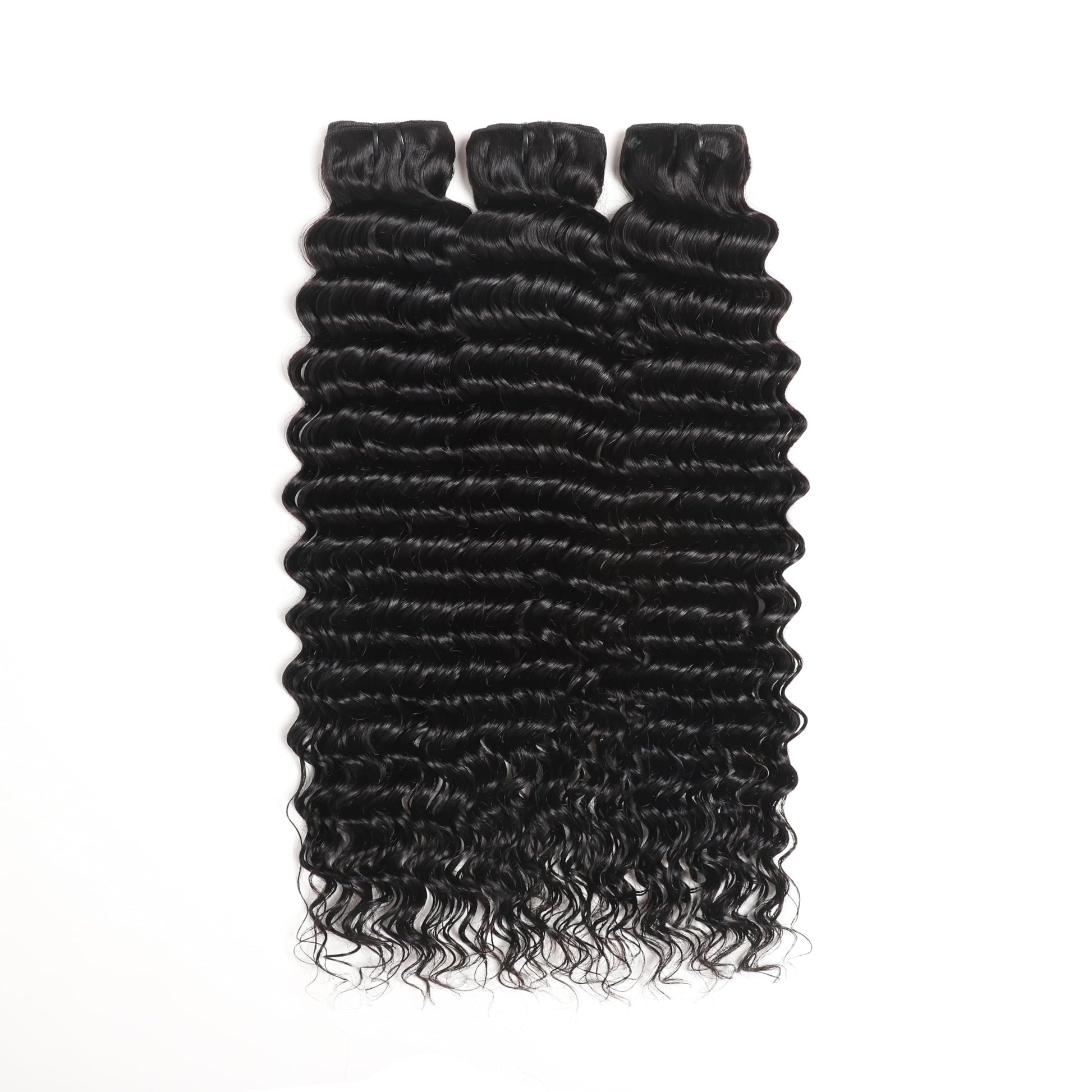 - Deep Wave Human Hair Bundles Material: 100% Unprocessed Virgin Human Hair Bundles, All The Hair Is Cut From Young Girls Directly, Soft and Bouncy, High Quality, Beautiful Wet and Wavy Bundles, High Elasticity and Good Curls.