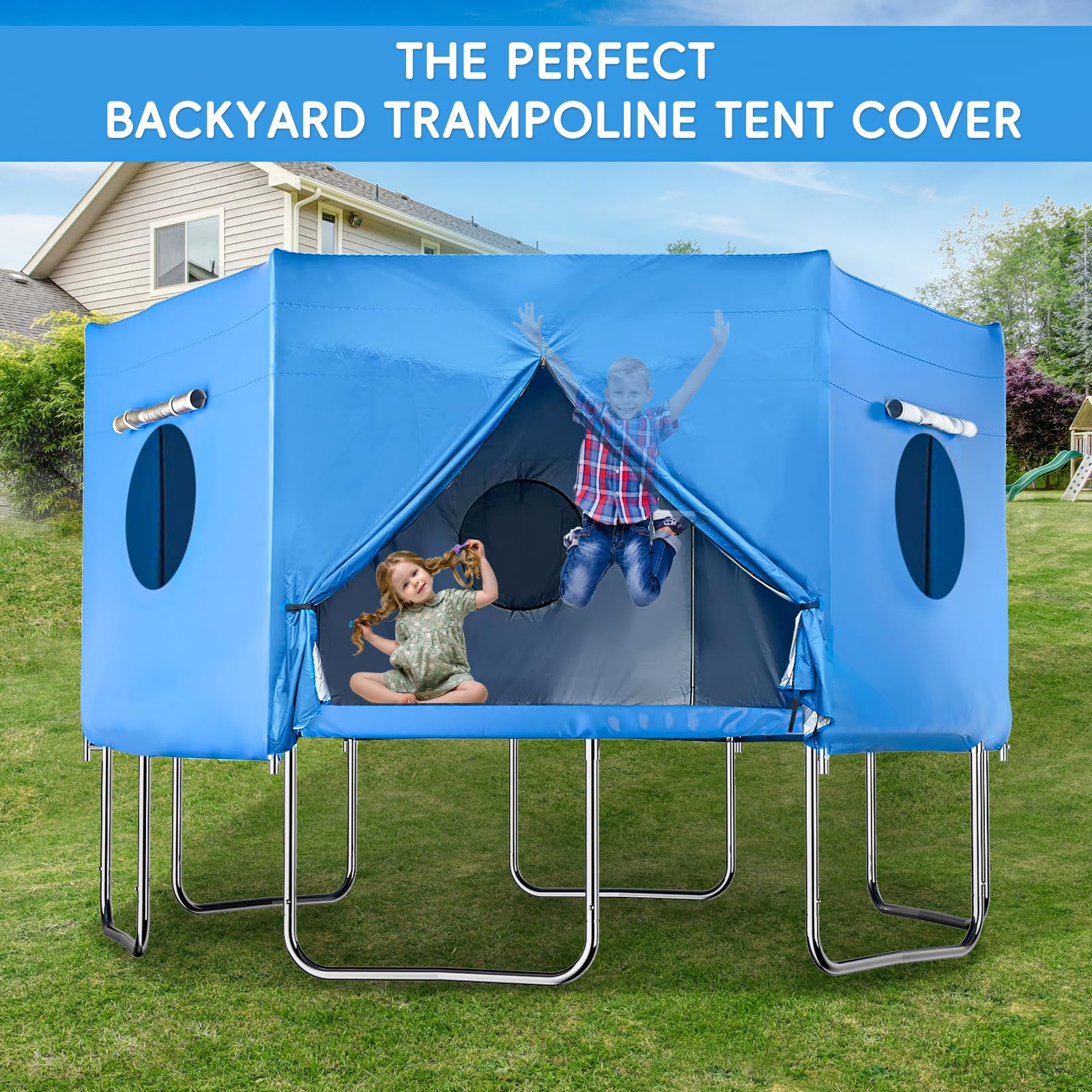 - Bring Fun to Children: The trampoline cover fully encloses the trampoline, protects your kids from moisture, bug bites, and heat from direct sunlight.Your kids can have movie nights and play games in it with the projector.Its like a mini clubhouse!