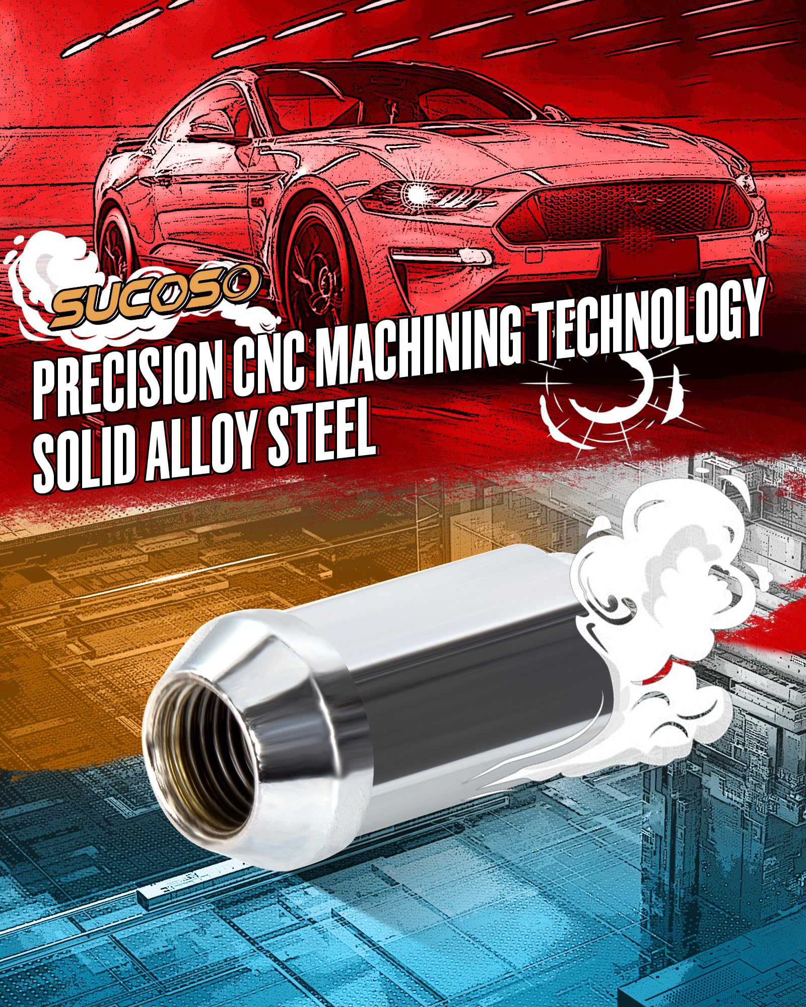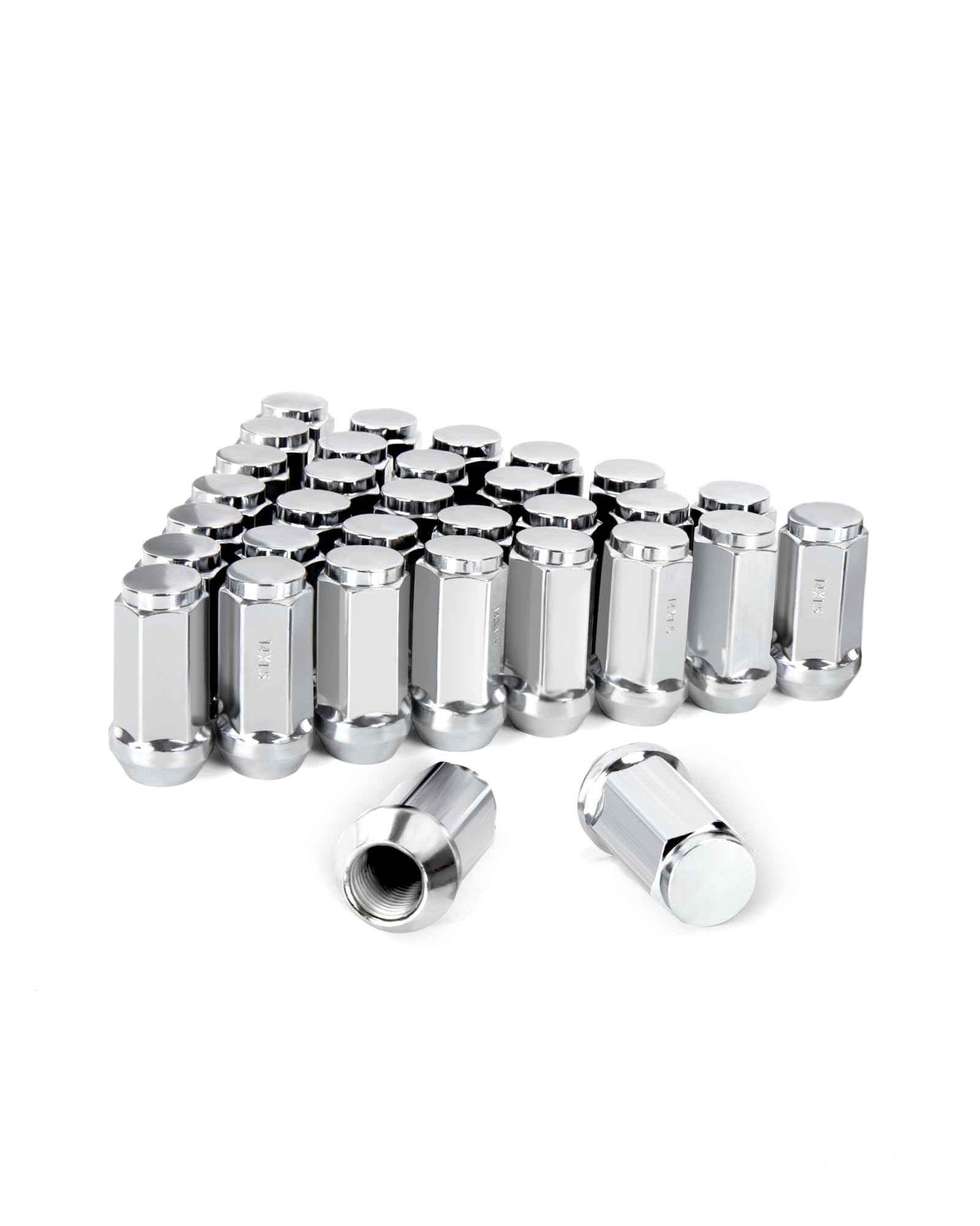 - ONE PIECE DESIGN: The stock lug nuts have metal covers that are easily damaged and stripped, while our lug nuts are one-piece and more durable. Our nuts are made of high-strength steel with cold forged and heat-treated technological process, chrome coating surface and 72-hour salt spray test, which is more durable, safer, not easy to rust.Packed with pearl cotton to avoid bumping.