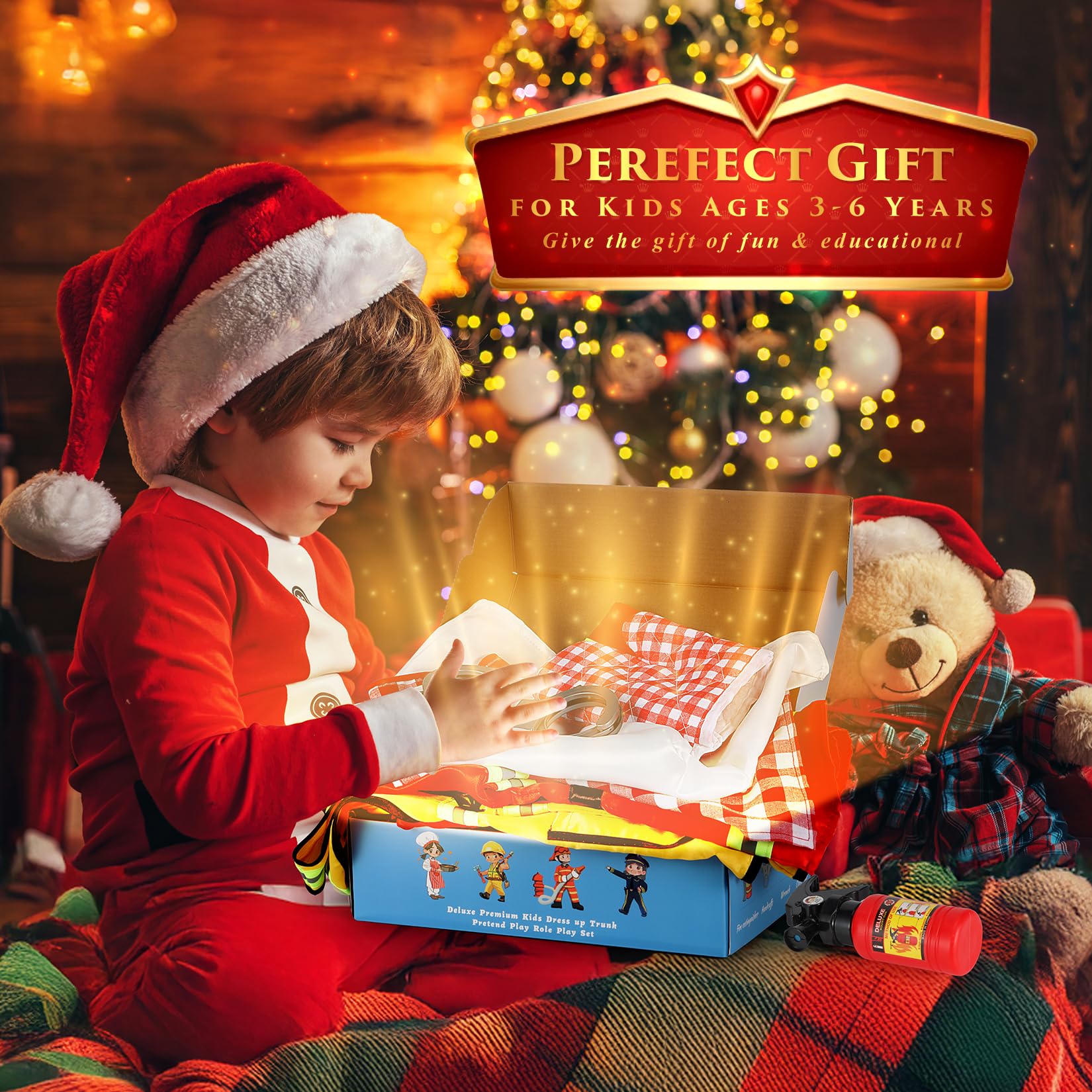 - Wonderful Birthday Christmas Gift for 3-6 Year Old Boys & Girls: Give your little ones the gift of imagination with this 4-in-1 toddler dress up clothes set! Designed for boys and girls ages 3-6, this set includes four complete kids costumes—Police Officer, Firefighter, Chef, and Construction Worker - with accessories for a realistic role-play experience. Perfect for parents looking for gifts for 3 year old boys, this toddler dress up set also makes a wonderful Christmas, birthday, or Halloween gift that will keep them entertained for hours