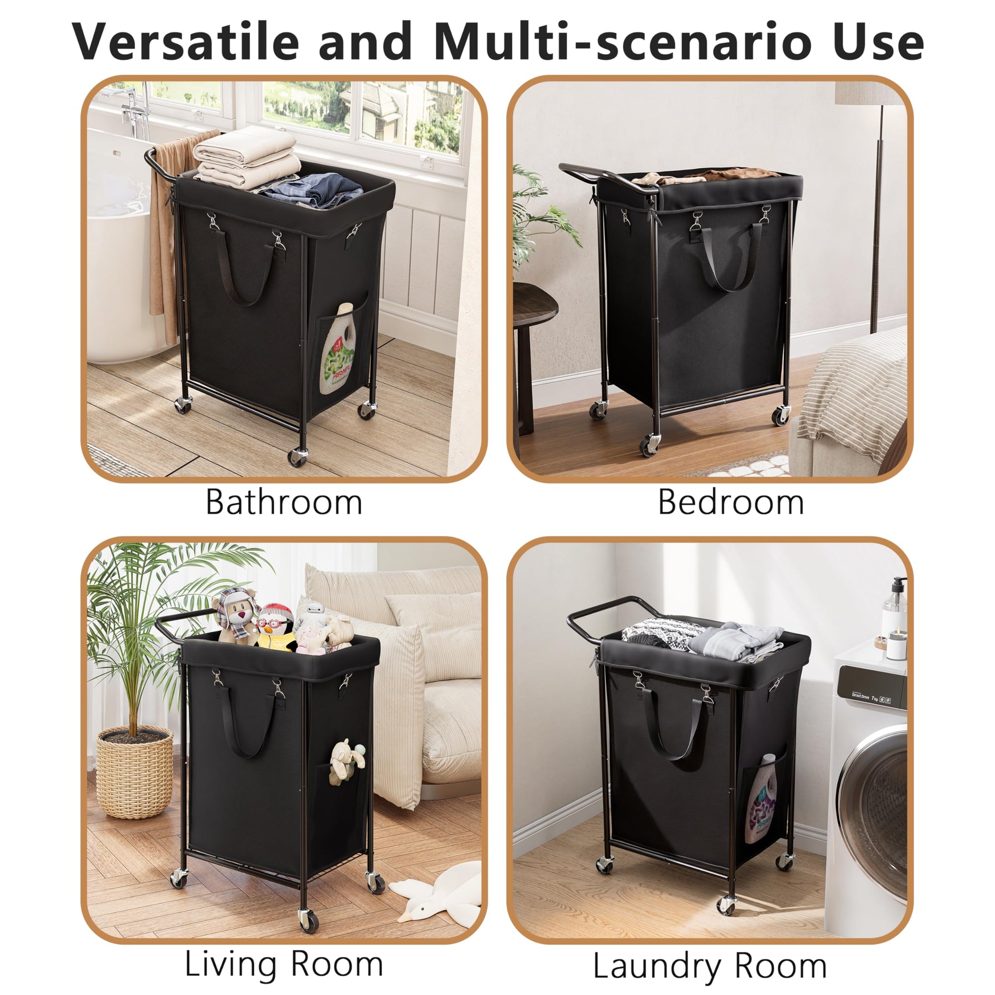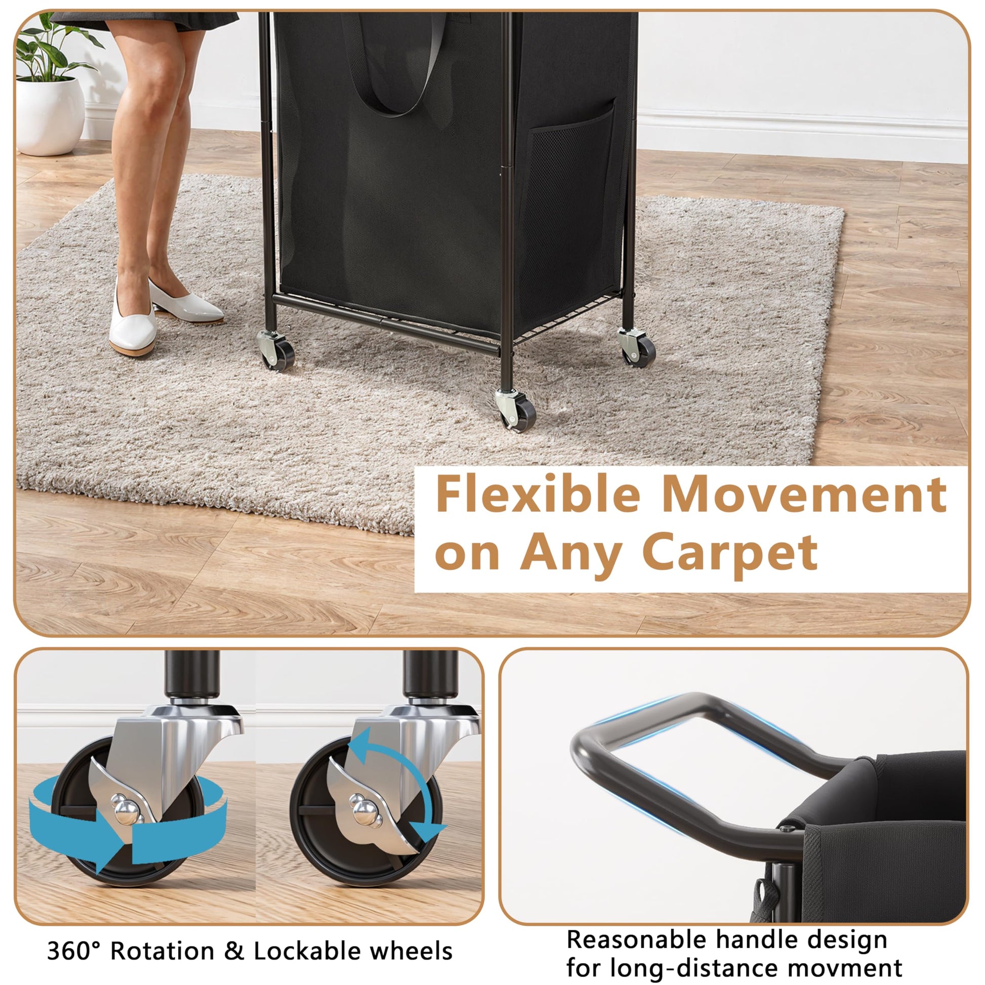 - Extra Large Laundry Hamper on Wheels: This tall laundry hamper with wheels measures 15.7'' x 26.7'' x 33.3'', which can hold a week's worth of laundry for a multi-person family. The double laundry hamper is designed to sort different types of dirty clothes