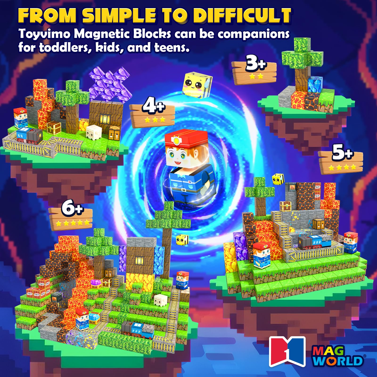 - POWERFUL MAGNETISM, EASY TO BUILD: Toyvimo magnetic blocks have powerful magnetism. Blocks don’t fall apart easily. Kids can build any shapes, simple or complex, as they like. Magnetic tiles are certified by CPSIA and ASTM, made of high-quality ABS material, with smooth and rounded edges to protect kids' curious hands, and the sealing technology ensures that the magnets will not fall out easily. It is recommended for boys & girls ages 3+