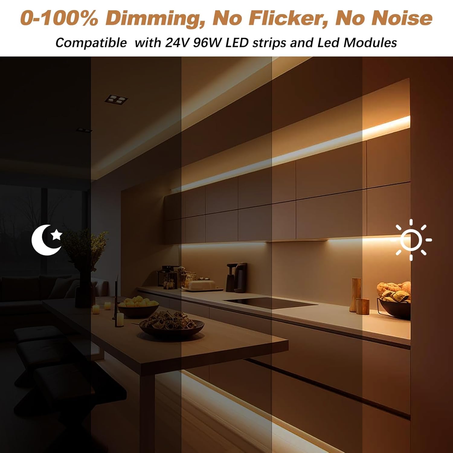 - Strong compatibility & Widely Use:Our ELV/MLV Triac dimmable LED driver 96W24V is compatible with Lutron &Leviton Switches, it can be used for a variety of applications, including 24V LED Strip Lights, 24V Power Supply, LED modules, LED bulbs, and more. With this 24v transformer, you can enjoy beautiful dimming experience!