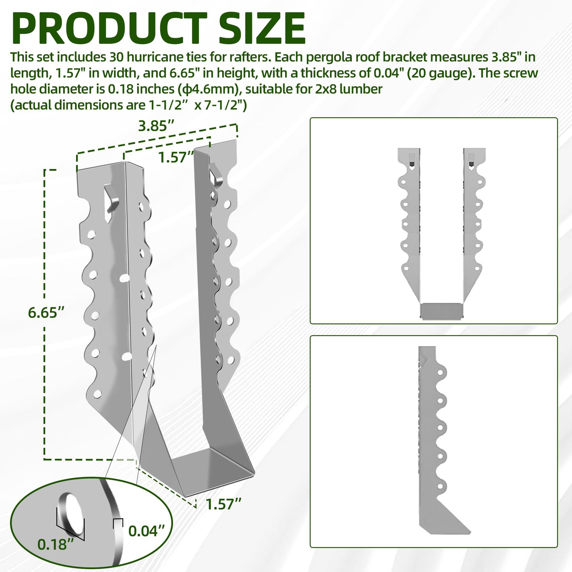 - High-Strength Support: With rounded edges for added safety, our 2x8 rafter brackets include pre-drilled holes for secure connections. They can withstand lateral and uplift loads, supporting up to 700 pounds, ensuring exceptional strength and stability