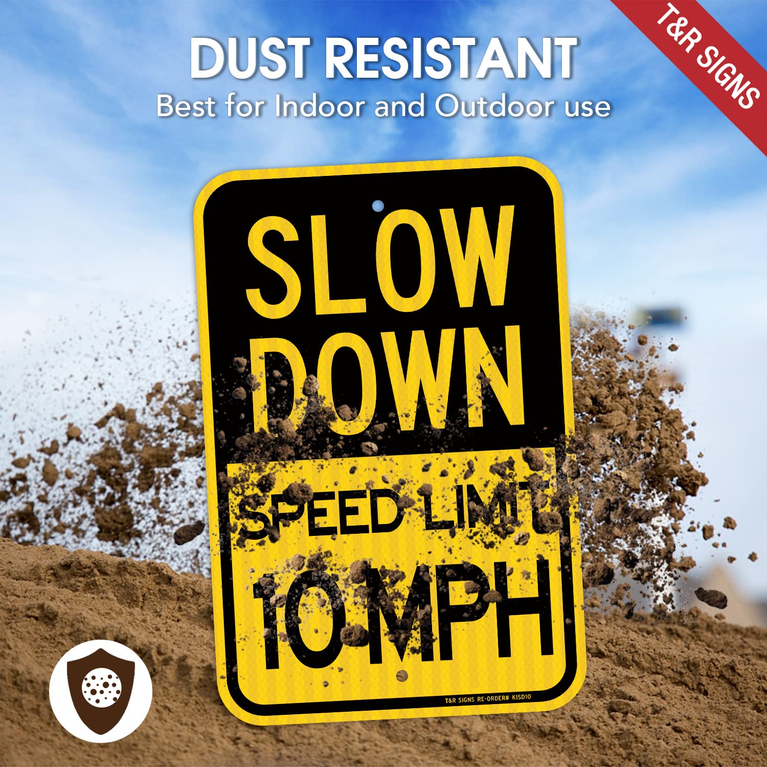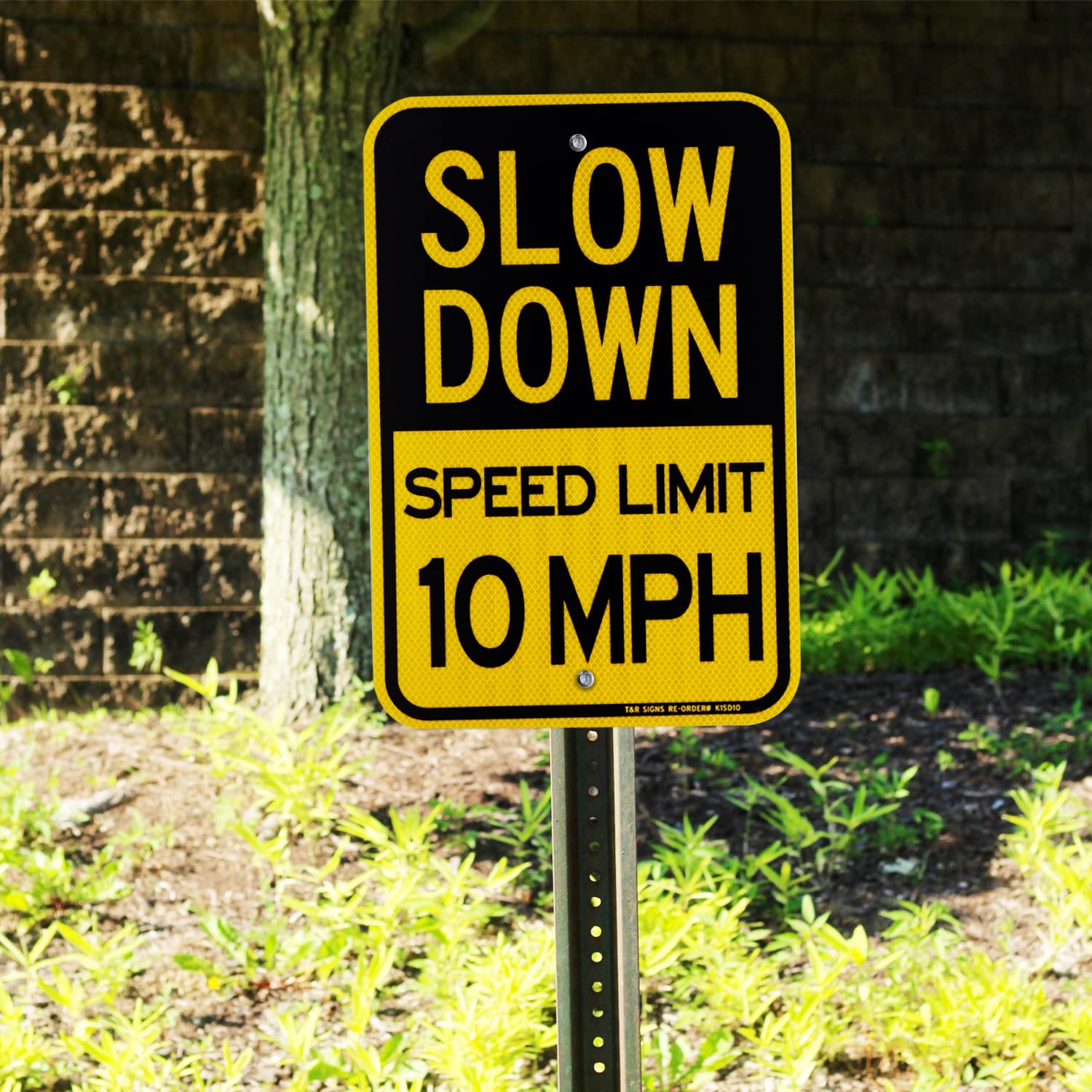 - Visible Warning: Our Slow Down Speed Limit 10 MPH Signs are bright and easy to spot.