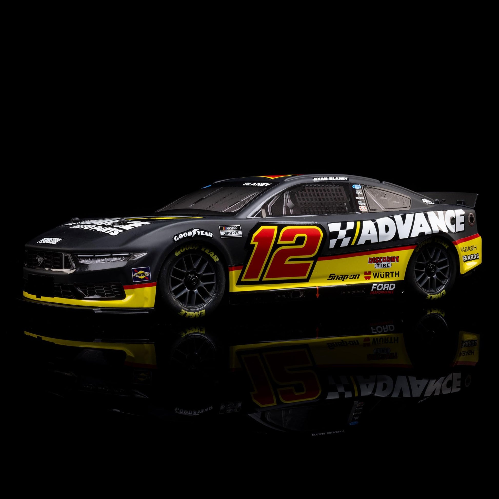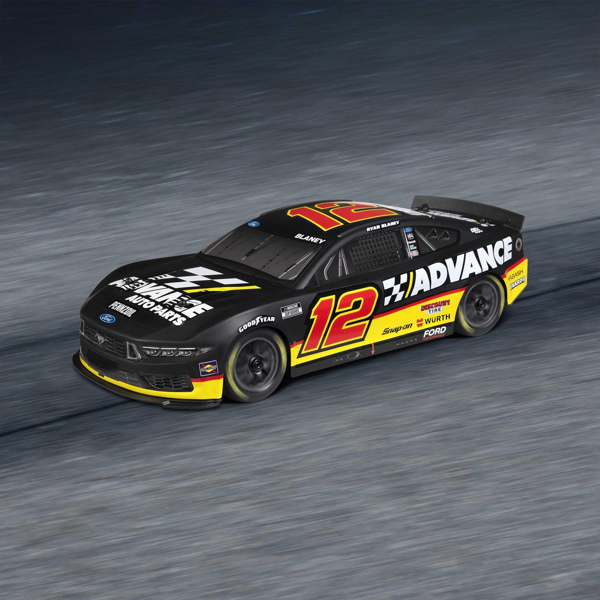 Losi 1/12 NASCAR RC Race Car Ryan Blaney No. 12 2025 Advance Auto Ford Mustang 2S AWD RTR Brushed On-Road Battery & Charger Included Black LOS1122512