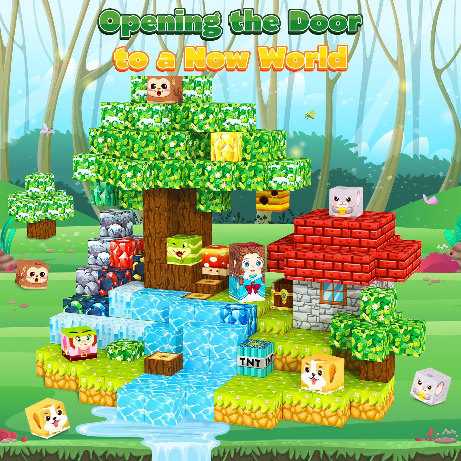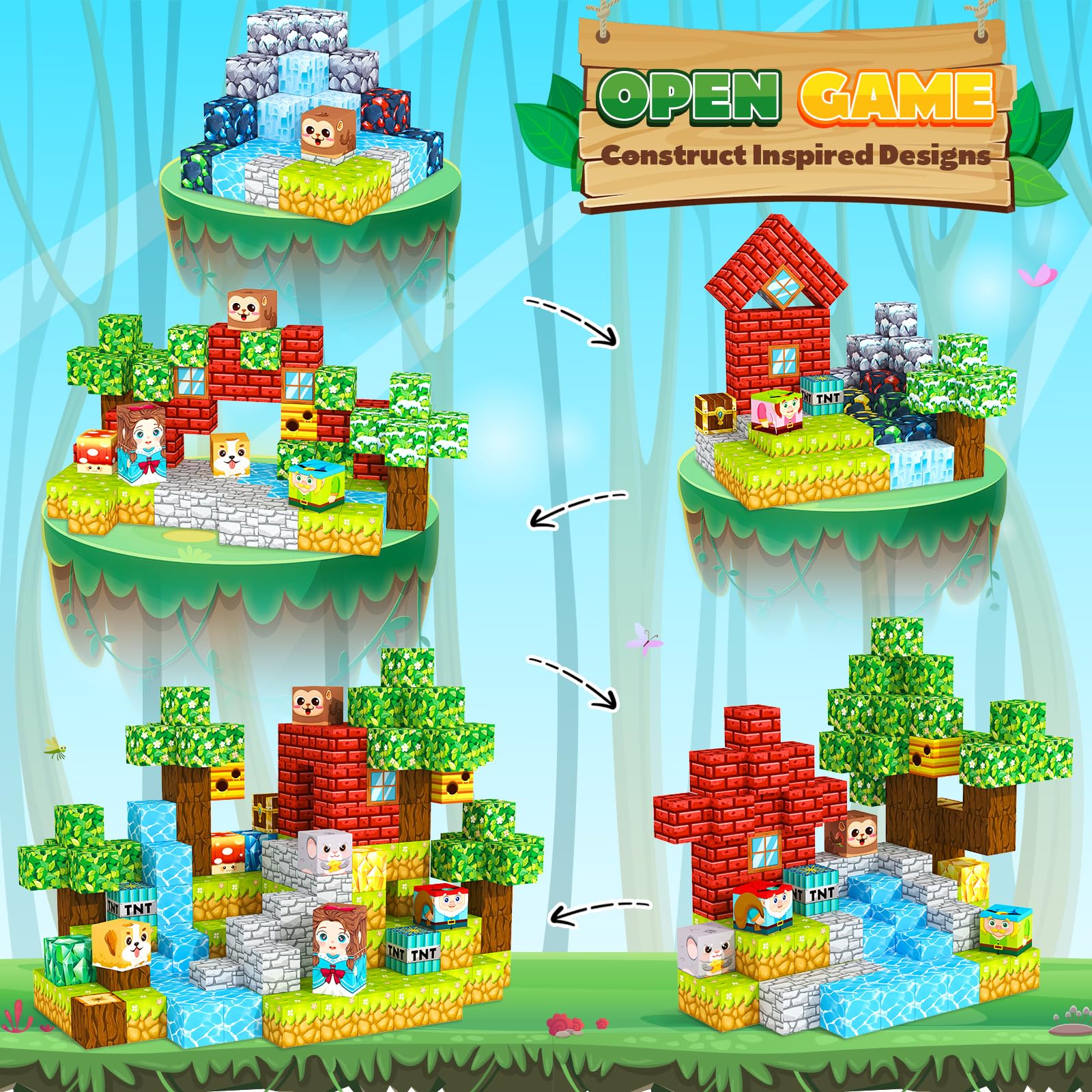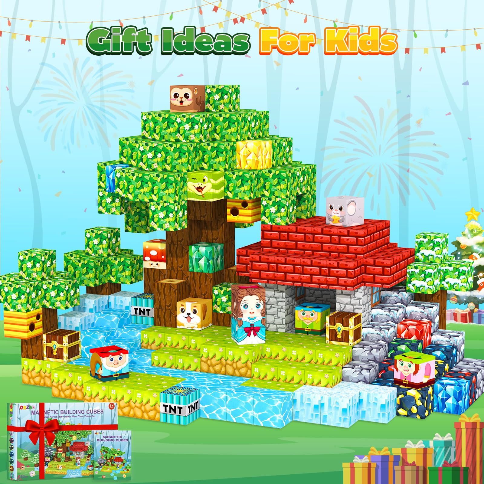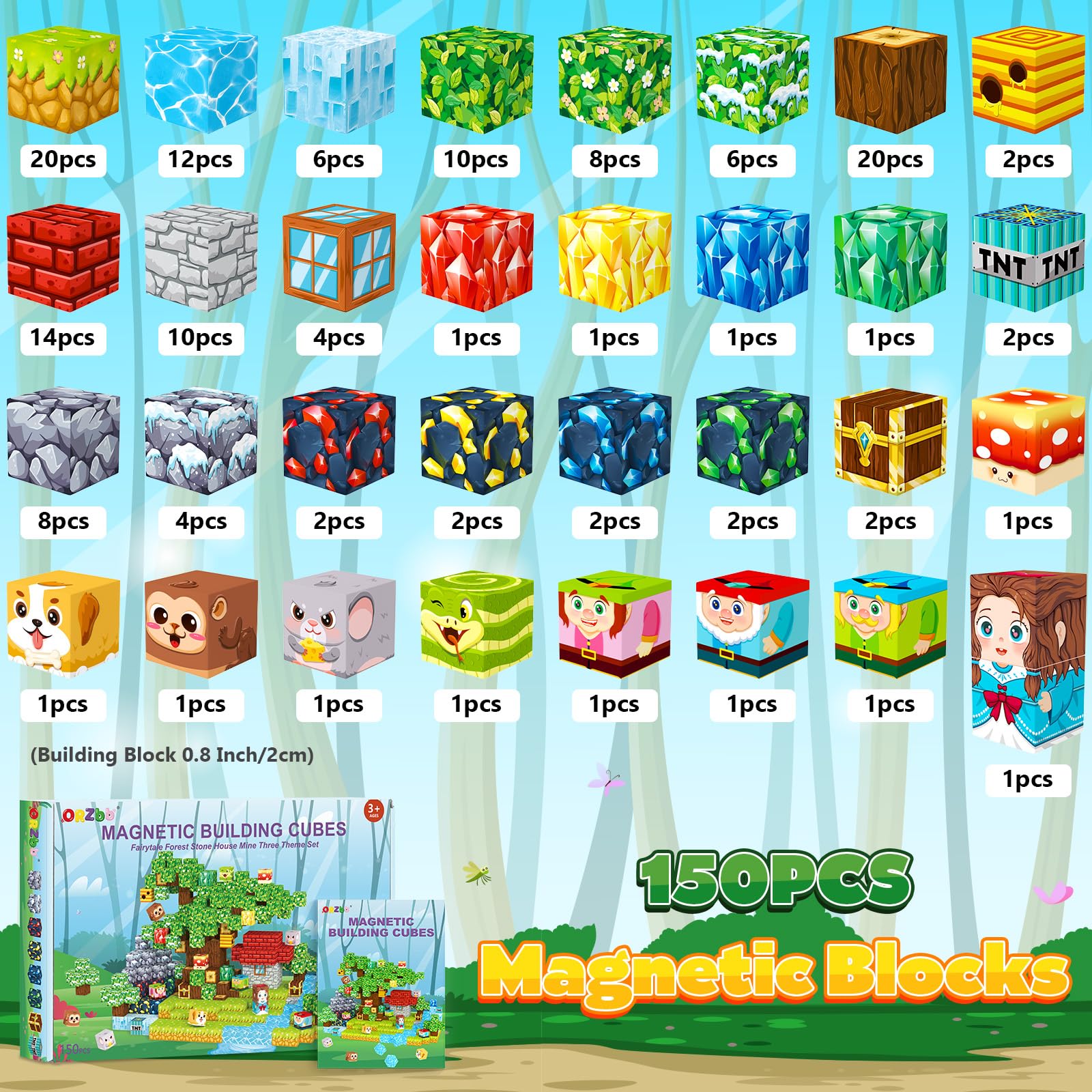 - MAGNETIC TILES BUILDING BLOCKS - This 150-piece magnetic blocks set includes three themes: fairytale forest stone house mine. It contains 32 carefully painted building blocks, that are compatible with magnet cubes of the same size, it's a good expansion set. Kids toys for ages 3+.