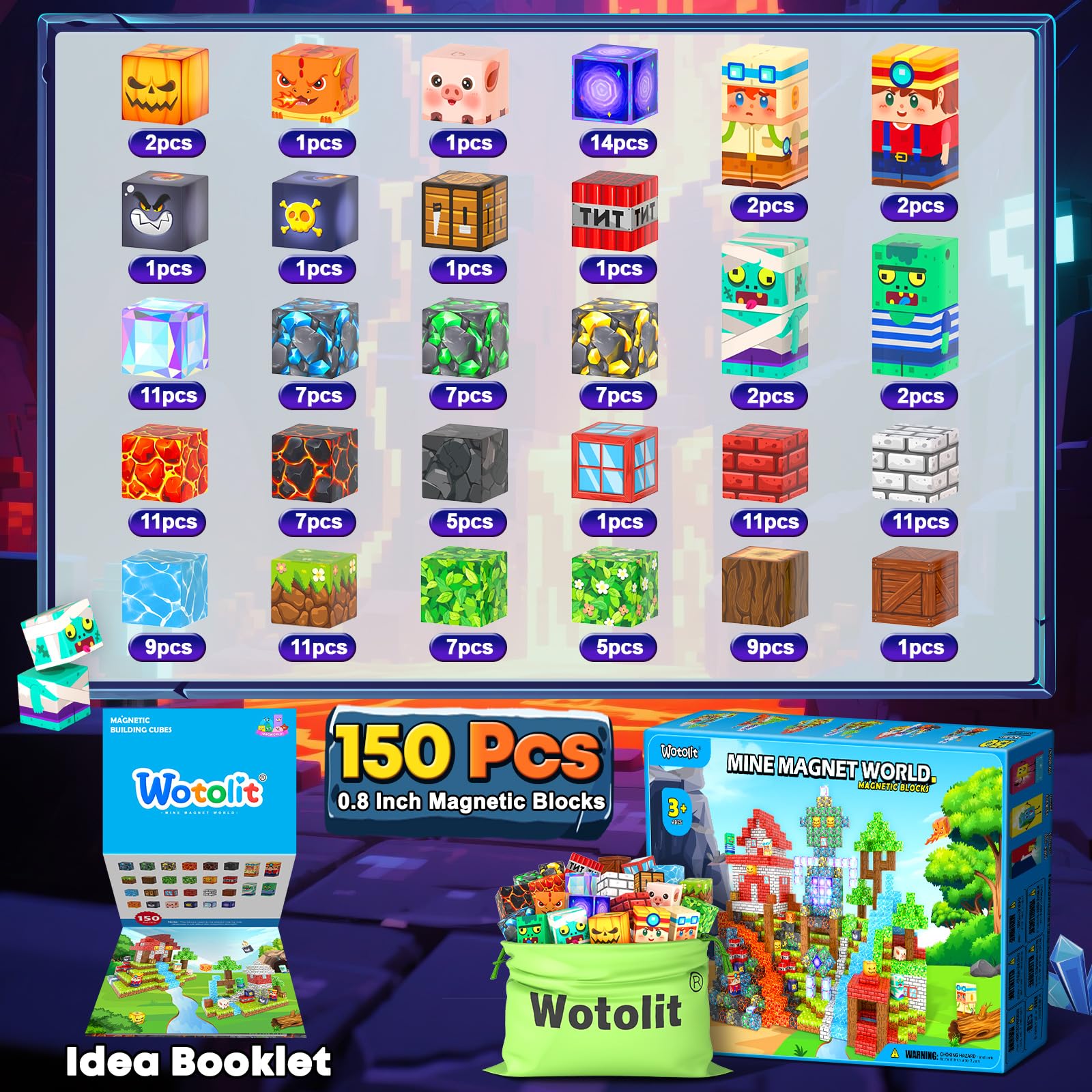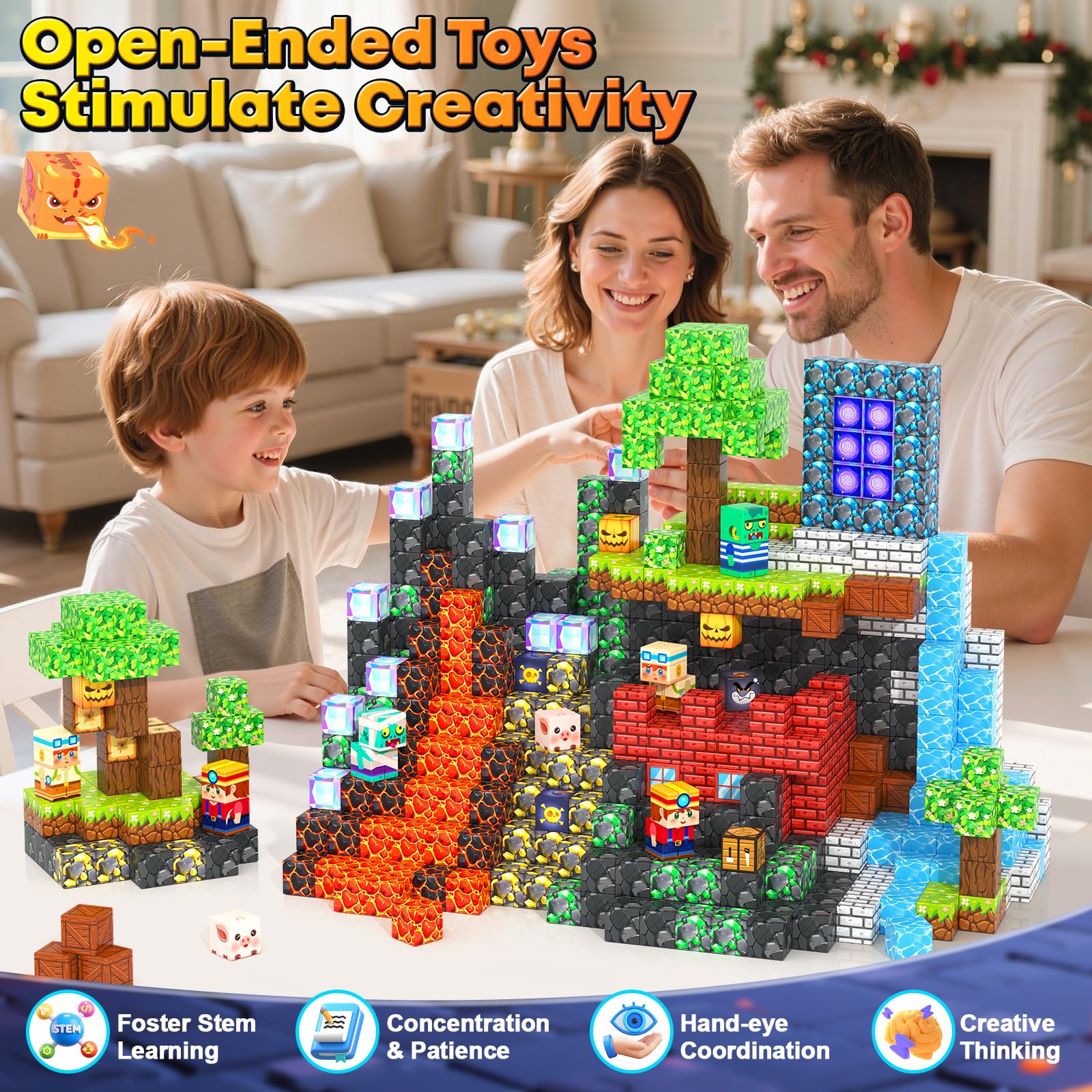 - 【STEM Learning Toys】Combining the science of UV technology and magnetism which make our magnetic building cubes more vivid and realistic than other brands, it offers a wealth of patterns. Kids can edit stories while playing immersively. This magnetic blocks toy will encourages kids to innovate and build freely, fostering their creativity, critical thinking, and problem-solving abilities, and will be popular classroom must have tools . Recommended toys gifts for toddlers ages 3+.