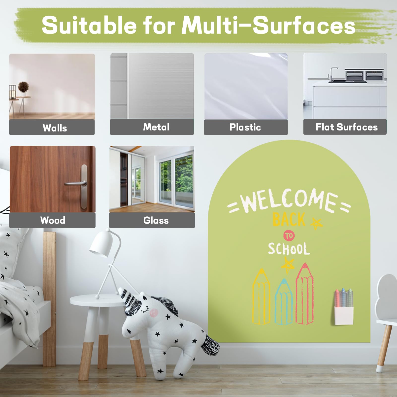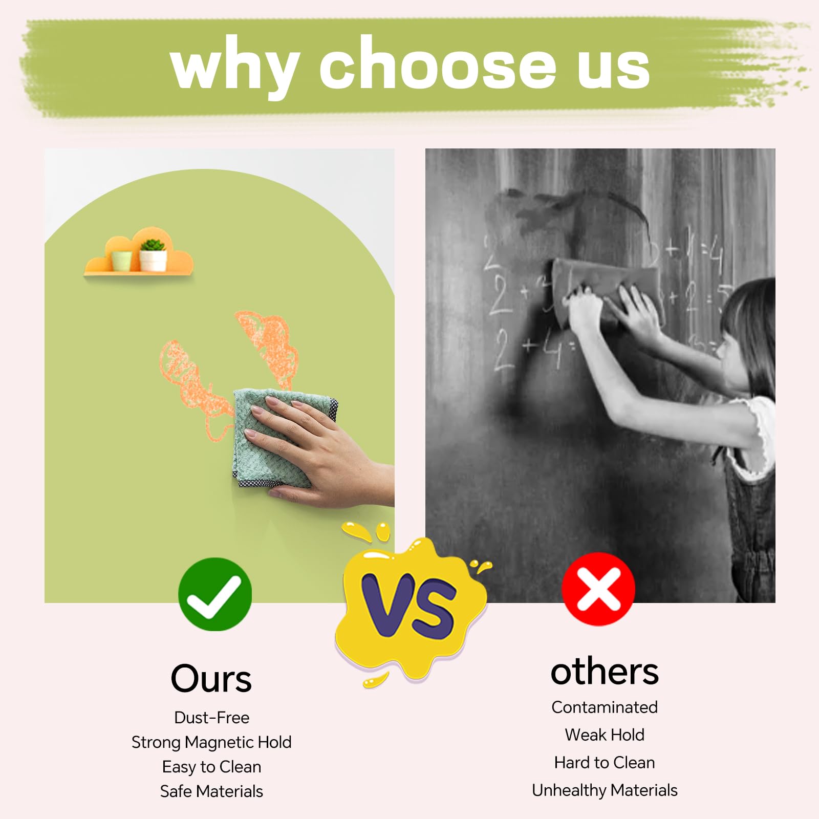Magnetic Chalkboard Wall Decal 40"x32" - Premium Adhesive, Includes Chalk Holder & 6 Dust-Free Chalks, Peel and Stick Whiteboard for Playroom, Office, Bedroom, Exclusive Green